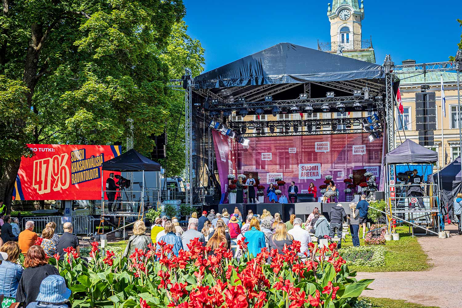 Lavalla ravintola-alaa koskevat päätökset päätyivät lautaselle, kun kokki Toni Toivanen tarjoili Sanoja syötäväksi politiikasta tunnetuille panelisteille. Jenni Pääskysaari johdatteli keskustelua ja haastoi panelisteja hyvässä hengessä pohtimaan alan tulevaisuutta sekä sen merkitystä suomalaisessa arjessa.