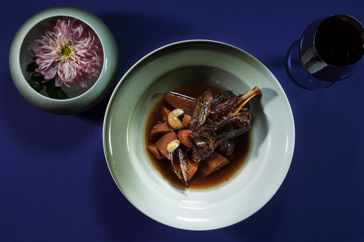 Punaviinissä haudutettua karitsaa ja uunijuureksia