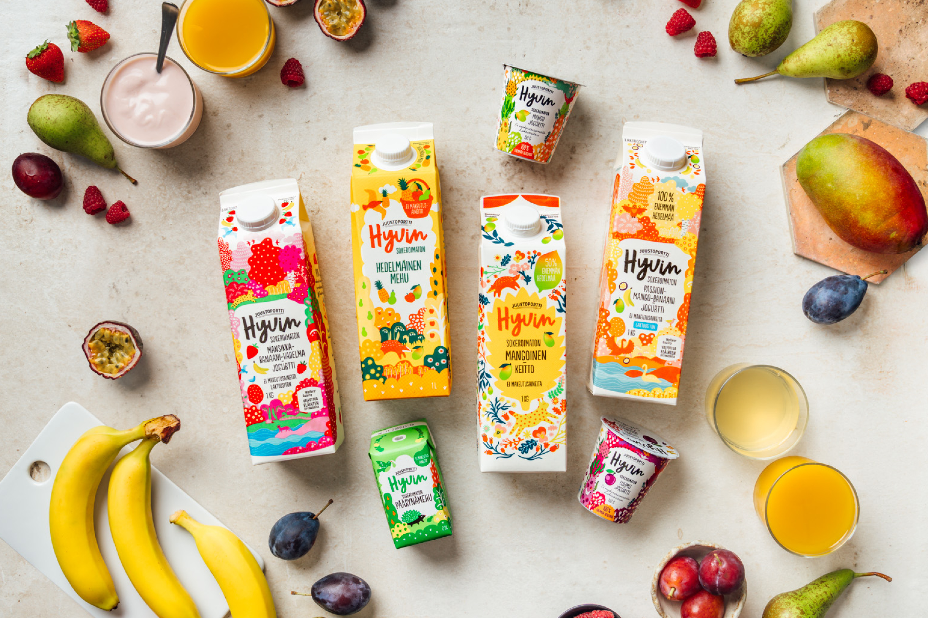 Sokeroimattomat ja makeutusaineettomat Hyvin juotavat jogurtit maistuvat monessa hetkessä ja sopivat hyvin myös mukaan otetavaksi evääksi. Herkullisen makunsa nämä jogurtit saavat marjoista ja hedelmistä. Tutustu raikkaisiin makuvaihtoehtoihin:
