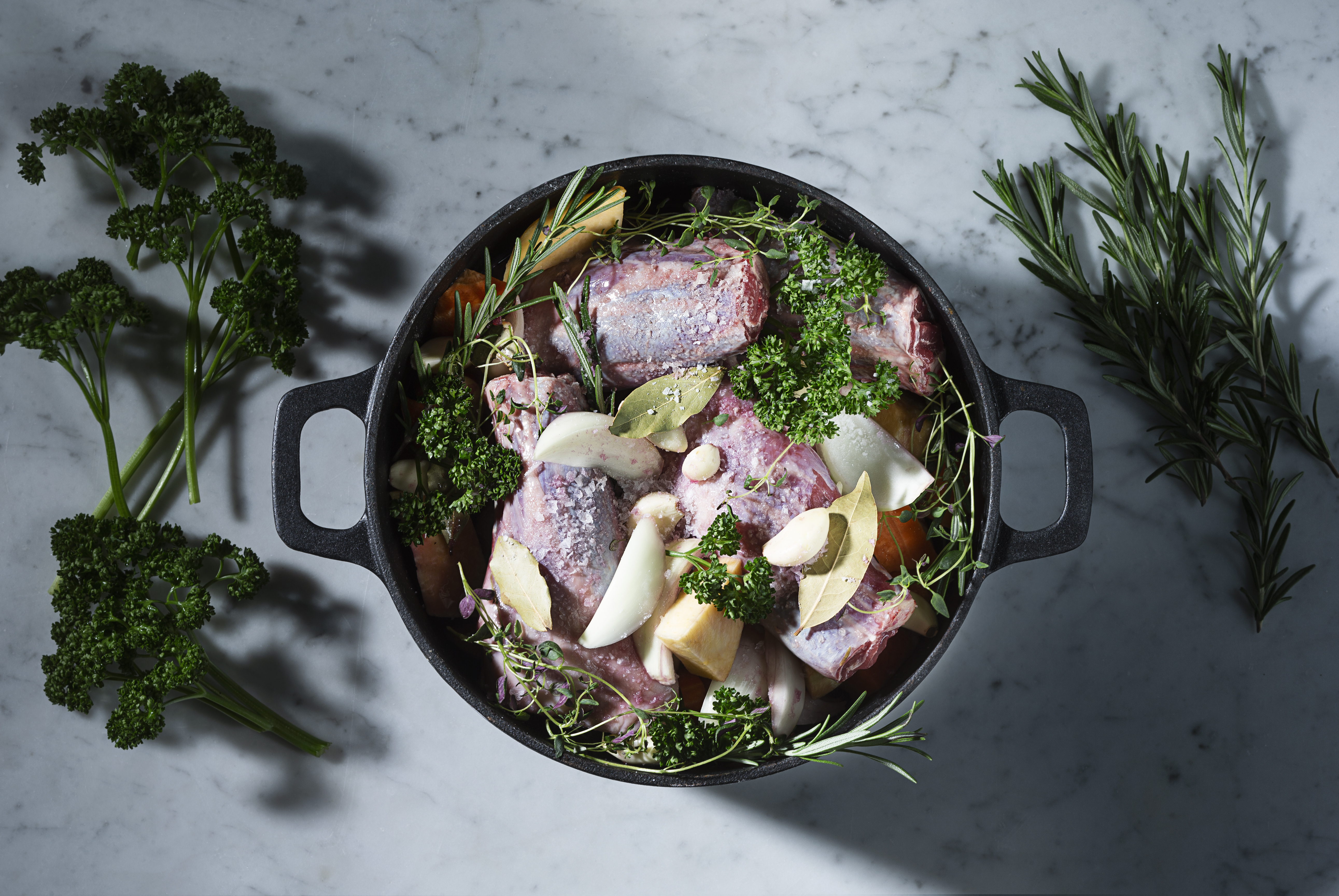 3. Laita kaikki ainekset pataan tai gn-vuokaan ja laita uuniin 150°C 4-6 tunniksi.