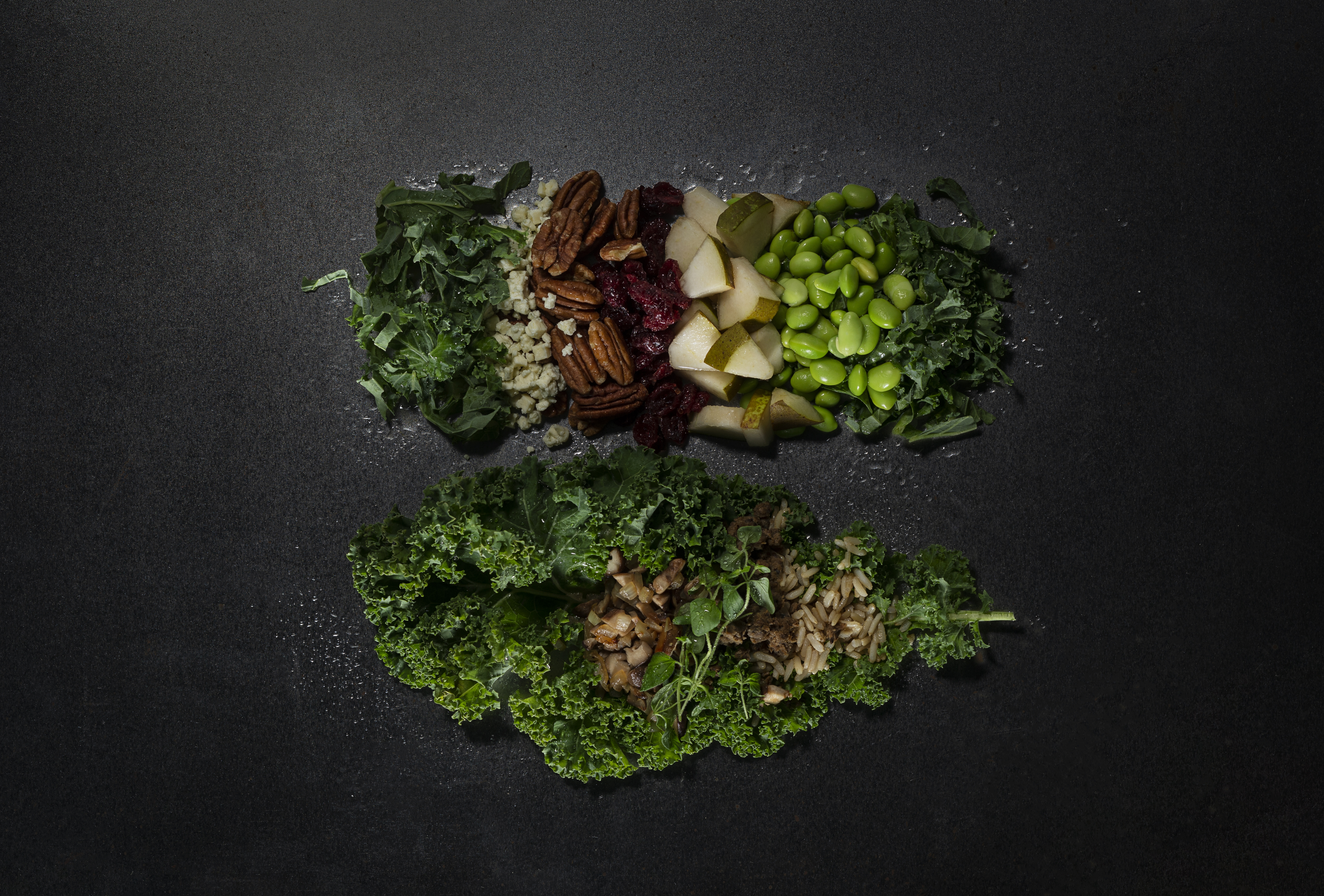 1. Valmista lehtikaalivesi. Ryöppää lehtikaalit suolalla maustetussa vedessä ja jäähdytä jäävedessä. Soseuta lehtikaalit vedessä ja lisää öljy sekä suola.