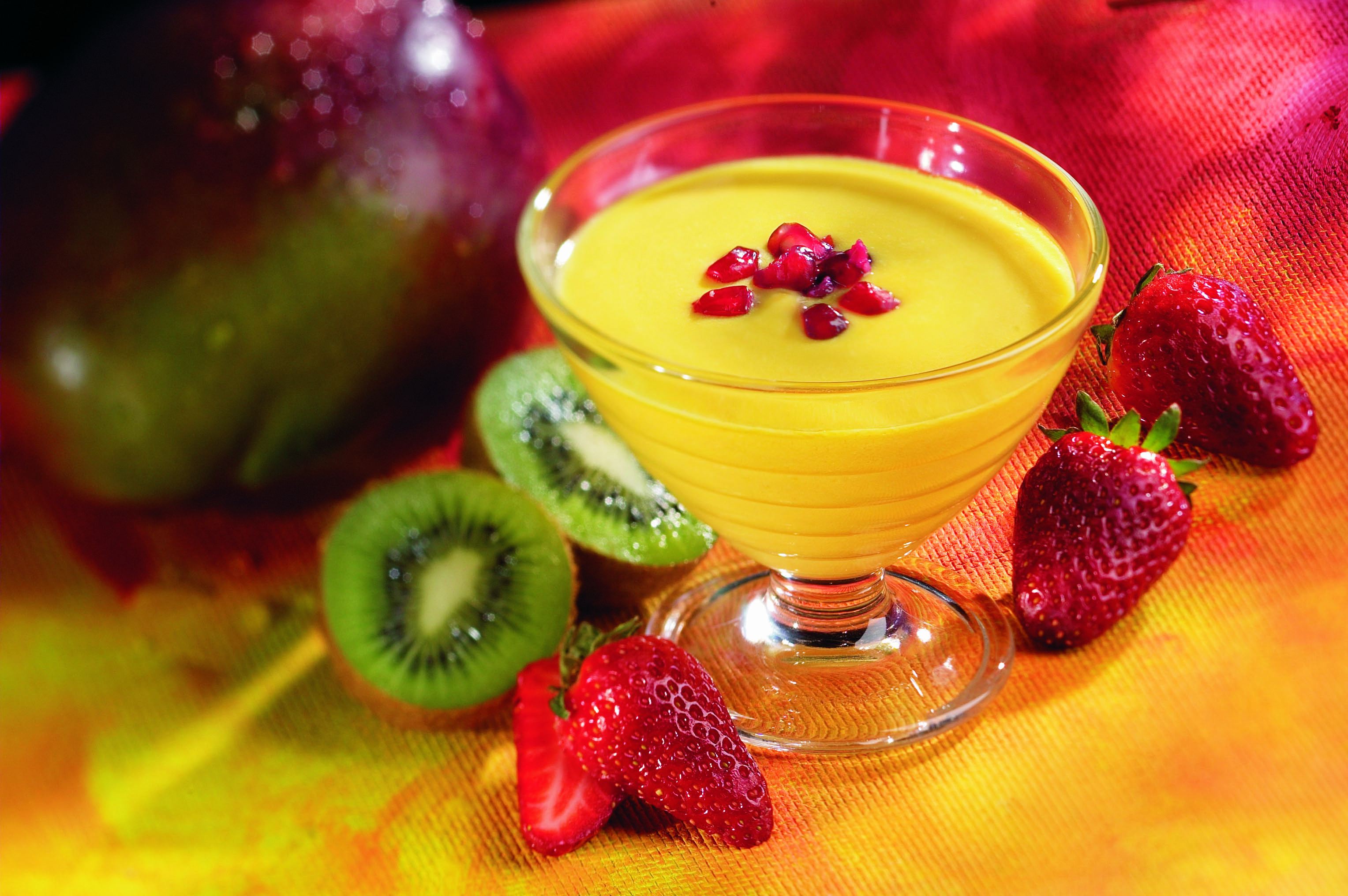 Sekahedelmäkiisseli ja mangomousse