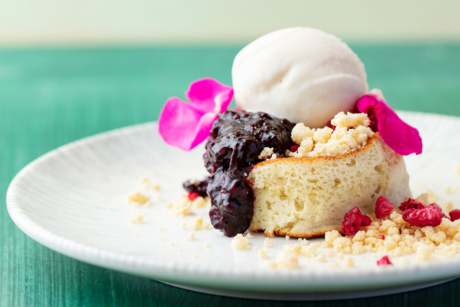 Rosmariinisiirappi 500 g Sokeri 300 g Vesi 20 g Mimis villirosmariini Mimis Villirosmariinilla maustettu tuorejuustokreemi 250 g Tuorejuusto 100 g Turkkilainen Jogurtti 10% 100 g Ranskankerma 28% 100 g Rosmariinisiirappia Villirosmariinilla maustettua veriappelsiinihilloke 1 kg Veriappelsiinia 250 g Hillosokeri 2 kpl Mimis villirosmariini tanko 3 rs Mimis Tiikeriorvokki 1 rs Mimis Ketunleipä, punainen 50 kpl La Rose Noire Superohut Kukka leivospohja