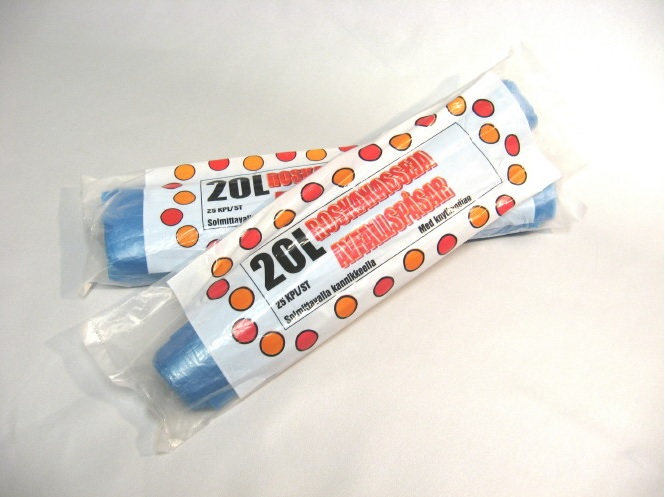 Sangallinen roskakassi 20l, sininen - edullinen roskakassi kotikäyttöön tai ammattilaiselle! Pussin siirtelyä ja sulkemista helpottavat kantokahvat! Vahvuus 0,012mm.