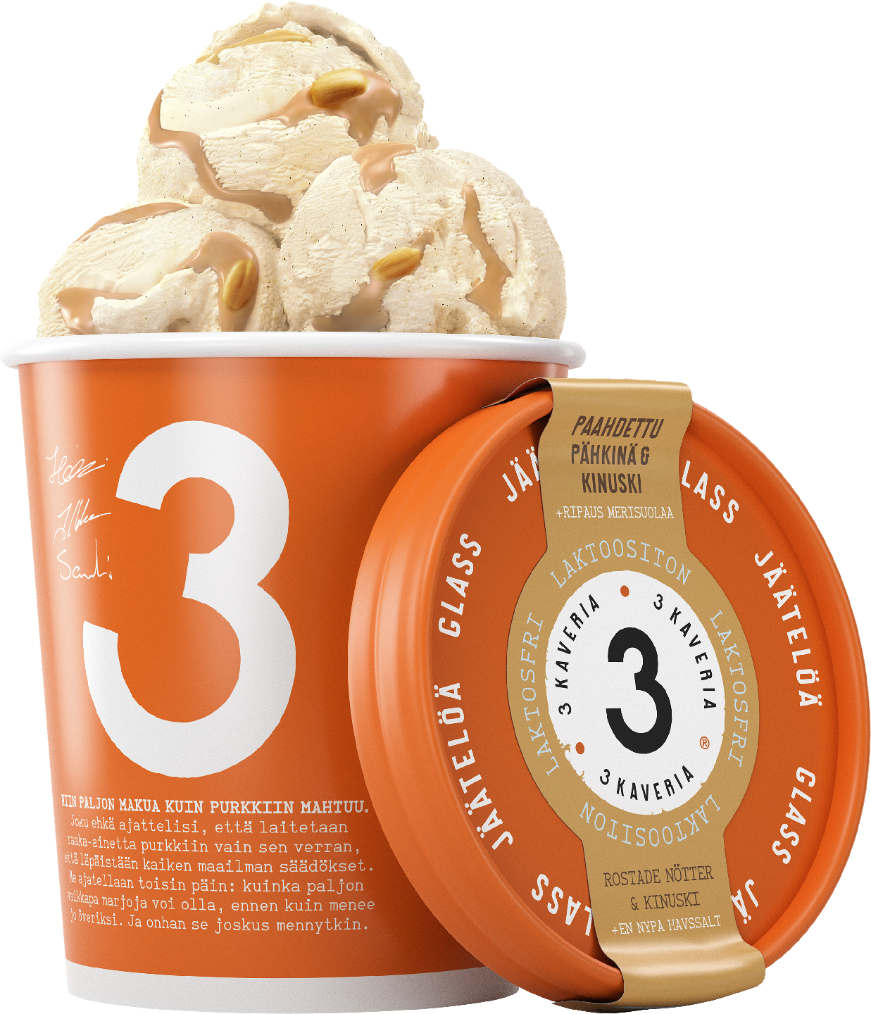 3 Kaveria Jäätelö 500ml paahdettu pähkinä & kinuski