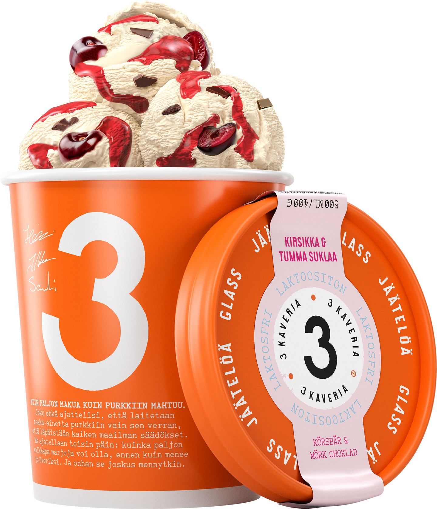 3 Kaveria Laktoositon Kirsikka & Tumma suklaa jäätelö 500ml/400g