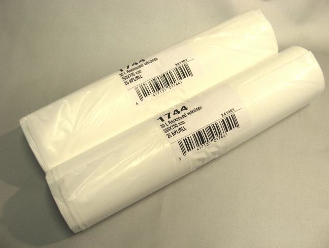 Extravahva 30-litrainen, valkoinen LD-PE roskapussi ammattikäyttöön ja kotiroskikseen! Vahvuus 0,03mm.