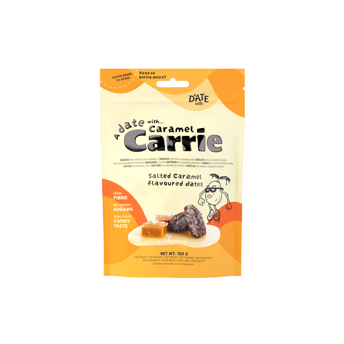 Kivettömät taateli 96%*, aromi (karamelli, suola) 2%, kasviöljy (kookos) 2%.