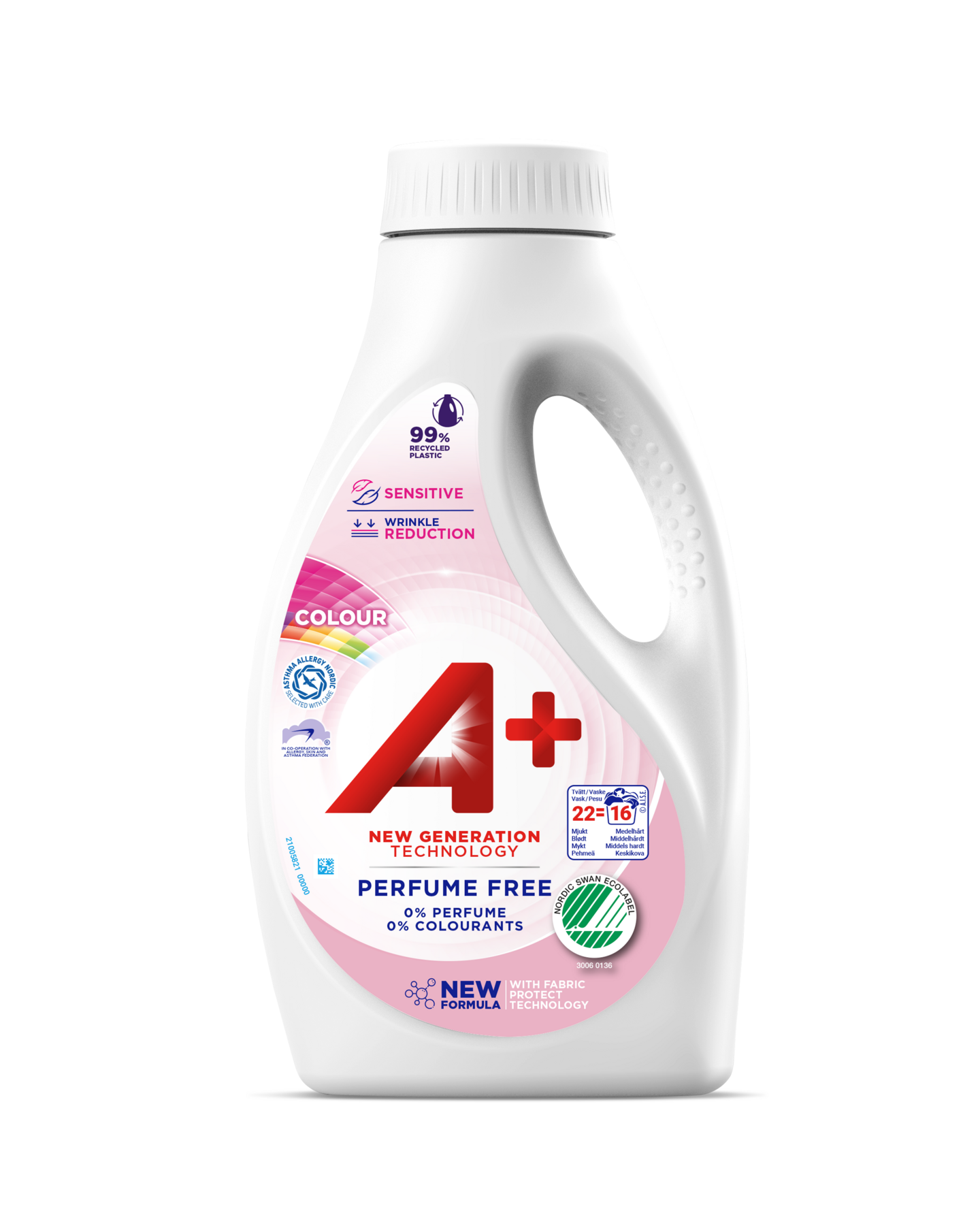 5-15% Anioniset pinta-aktiiviset aineet, 5-15% Ionittomat pinta-aktiiviset aineet; <5% Saippua; Entsyymit, Phenoxyethanol. Sisältää: Aqua, Sodium Laureth Sulfate, Laureth-7, Sodium Citrate, Sodium Palm Kernelate, Glycerin, Sodium Formate, Sulfated Ethoxylated Hexamethylenediamine Quaternized, Sodium Hydroxide, Phenoxyethanol, Propylene glycol, Alcohol, Poly-4-Vinylpyridine-N-Oxide, Subtilisin, Calcium Chloride, Denatonium benozoate, Sorbitol, Amylase, Cellulase, Calcium Hydroxide.