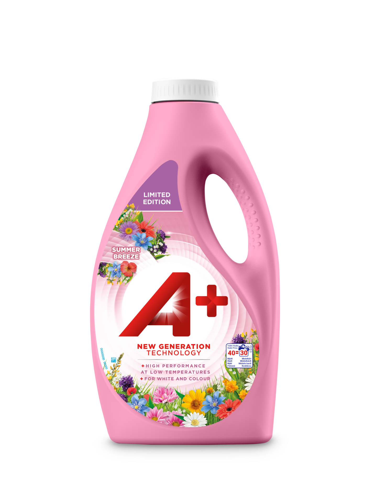 Hurmaava A+ Summer Breeze -pyykinpesuneste raikkaalla sitruksen ja kesäkukkien tuoksulla. Soveltuu väri- ja valkopyykille, ja tehoaa tahroihin alhaisissakin lämpötiloissa. Saatavilla rajoitetun ajan! Pakkaus on tehty 99% kierrätysmuovista, ja sen voi käytön jälkeen kierrättää.