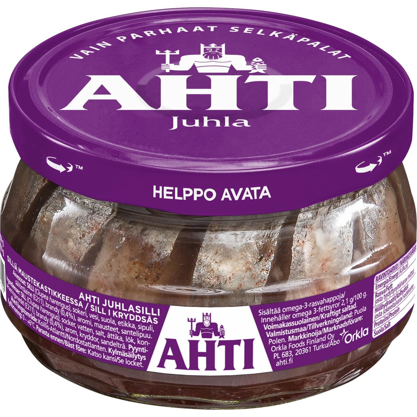 Ahdin sillipalat on maustettu juhlavasti brandyllä. Nimestään huolimatta Juhlasilli sopii sekä arkeen että juhlaan.
