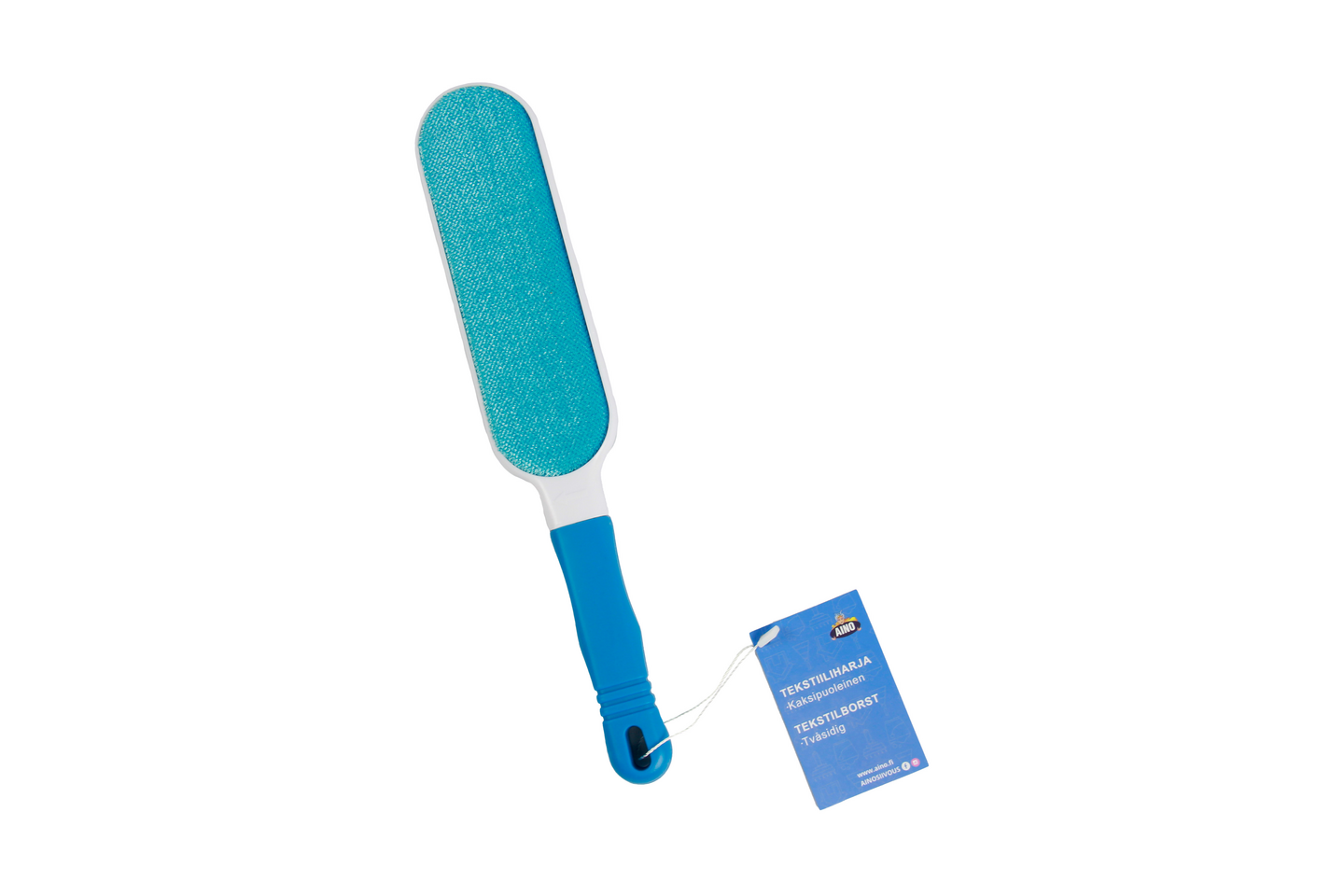 Kaksipuolinen Aino tekstiiliharja poistaa vaatteilta nukan, hiukset, karvat, pölyn ja hilseen.