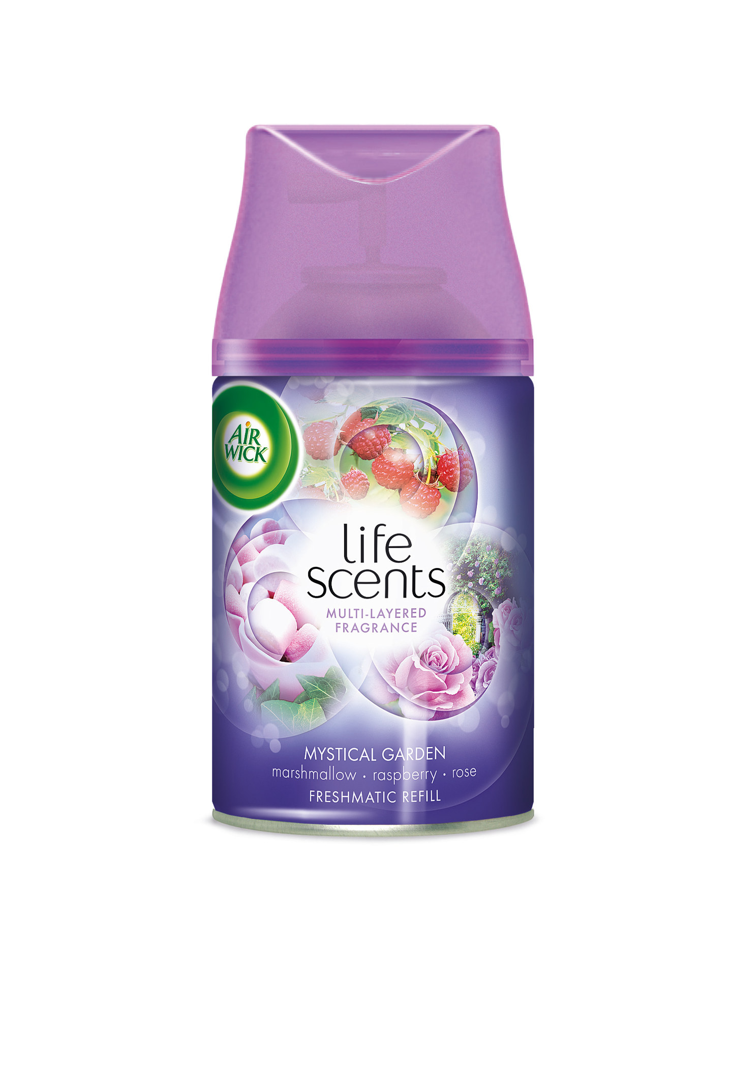 Löydä salainen puutarha, jossa tuoksuvat auringon kypsyttämät vadelmat, kukkivat ruusut ja pehmeä vaahtokarkki. Suihkauttaa raikasta tuoksua automaattisesti, ja pitää kotisi aina kutsuvan tuoksuisena. Valitse haluamasi Air Wick ja anna sen levittää miellyttävää tuoksua sekä hyvää mieltä jopa 70 päivän ajan *. * Perustuen alimman tehon asetukseen