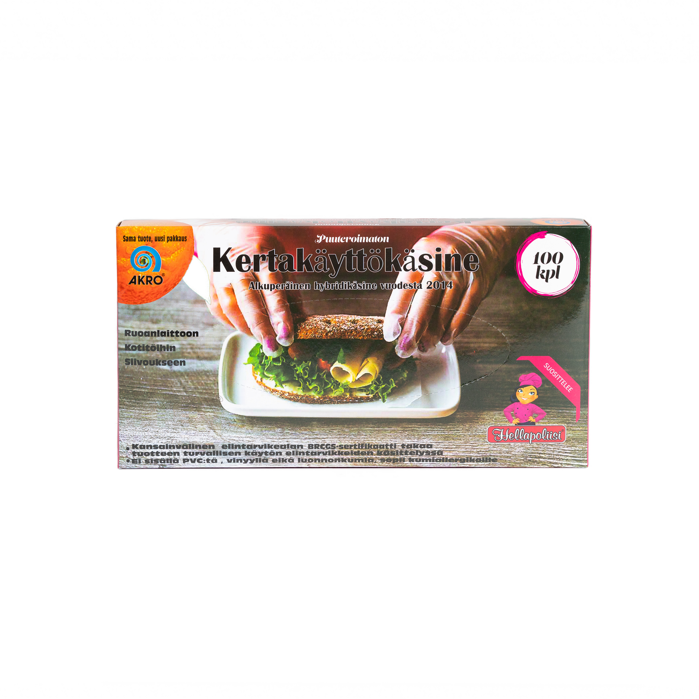 Akro kertakäyttökäsineet on valmistettu uudenlaisesta hybridimuovista.