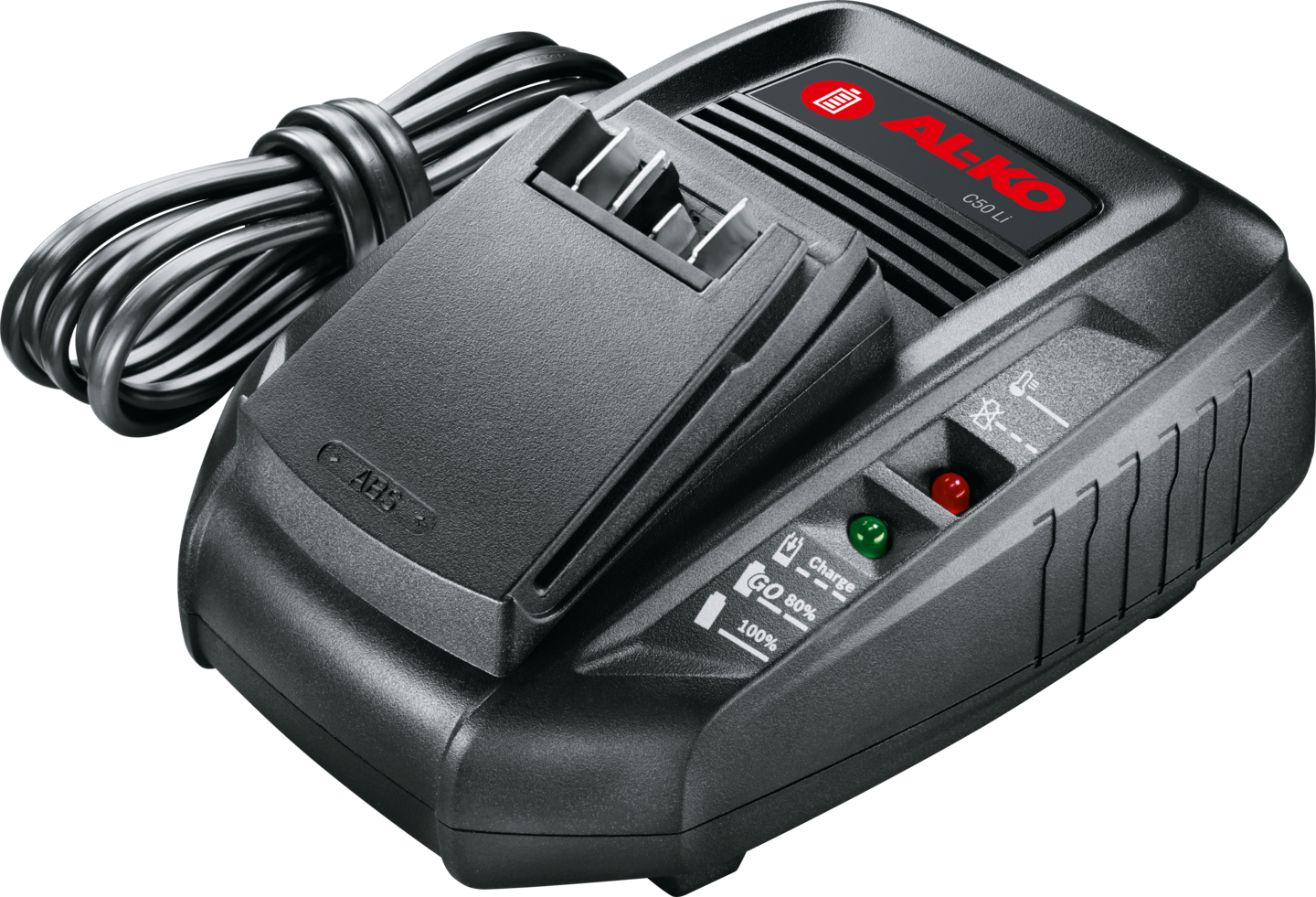 C 50 laturi kaikille AL-KO B-Comp 18V -sarjan akuille 2,5-6,0Ah. Arvioitu latausaika n. 60min-2,5Ah, 95min-4,0Ah, 105min-5,0Ah, 130min-6,0Ah.