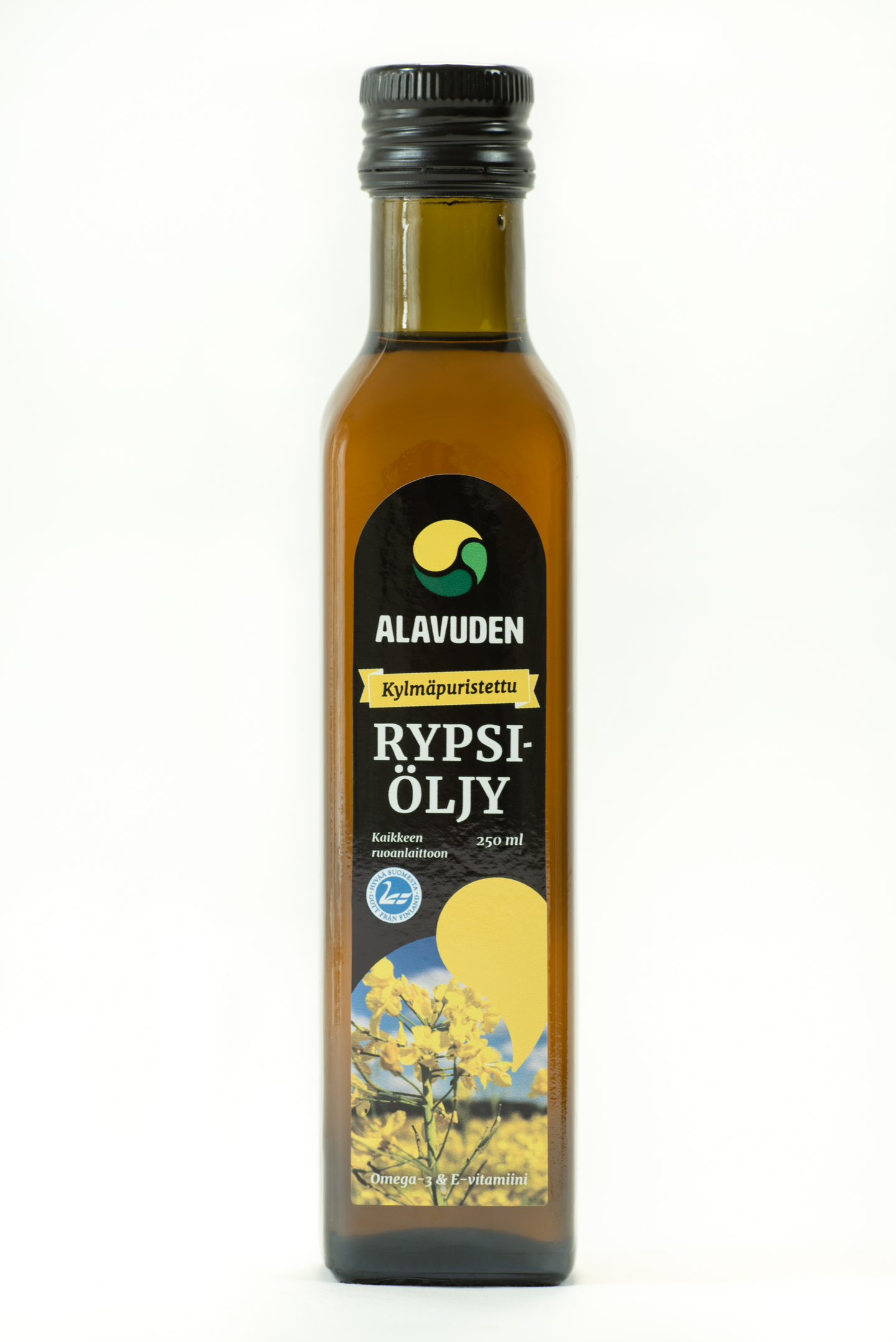 Suomen kesän valoisuus kypsyttää rypsin erityisen aromikkaaksi. Rypsin viljelijä on meille tärkeä kumppani ja kaikki tuotteemme ovat jäljitettävissä viljelijän pelloille saakka. Joutsenlippu-merkintä kertoo, että käyttämämme rypsi on viljelty Suomessa. Valitsemme rypsinsiemenet huolella ja kylmäpuristamme siemenistä öljyn alhaisessa lämpötilassa mekaanisesti. Hellävarainen kylmäpuristusmenetelmämme säilyttää rypsin aidon ja luonnollisen maun sekä arvokkaat ravintoaineet. Kylmäpuristettu rypsiöljy on täyteläinen makunautinto ja soveltuu sekä kylmään että kuumaan ruoanvalmistukseen.