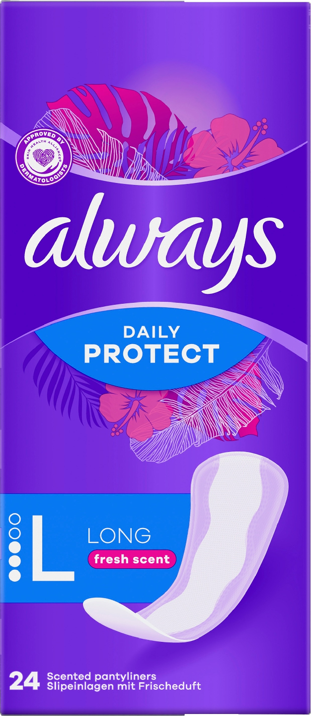 Always Dailies Long Fresh pikkuhousunsuojat raikkaalla tuoksulla suojaavat ja pitävät olon raikkaana koko päivän. Kokeile tavallista pidempiä Always Dailies Long Fresh pikkuhousunsuojia, jotka tarjoavat lisäsuojaa ja luotettavaa raikkautta. Tuoksuja neutralisoivan tekniikan ja imukykyisen alueen sisältävät pikkuhousunsuojat ovat ihanteelliset valkovuotoon ja suojaksi epäsäännöllisiin kuukautisiin tai niukkaan vuotoon.