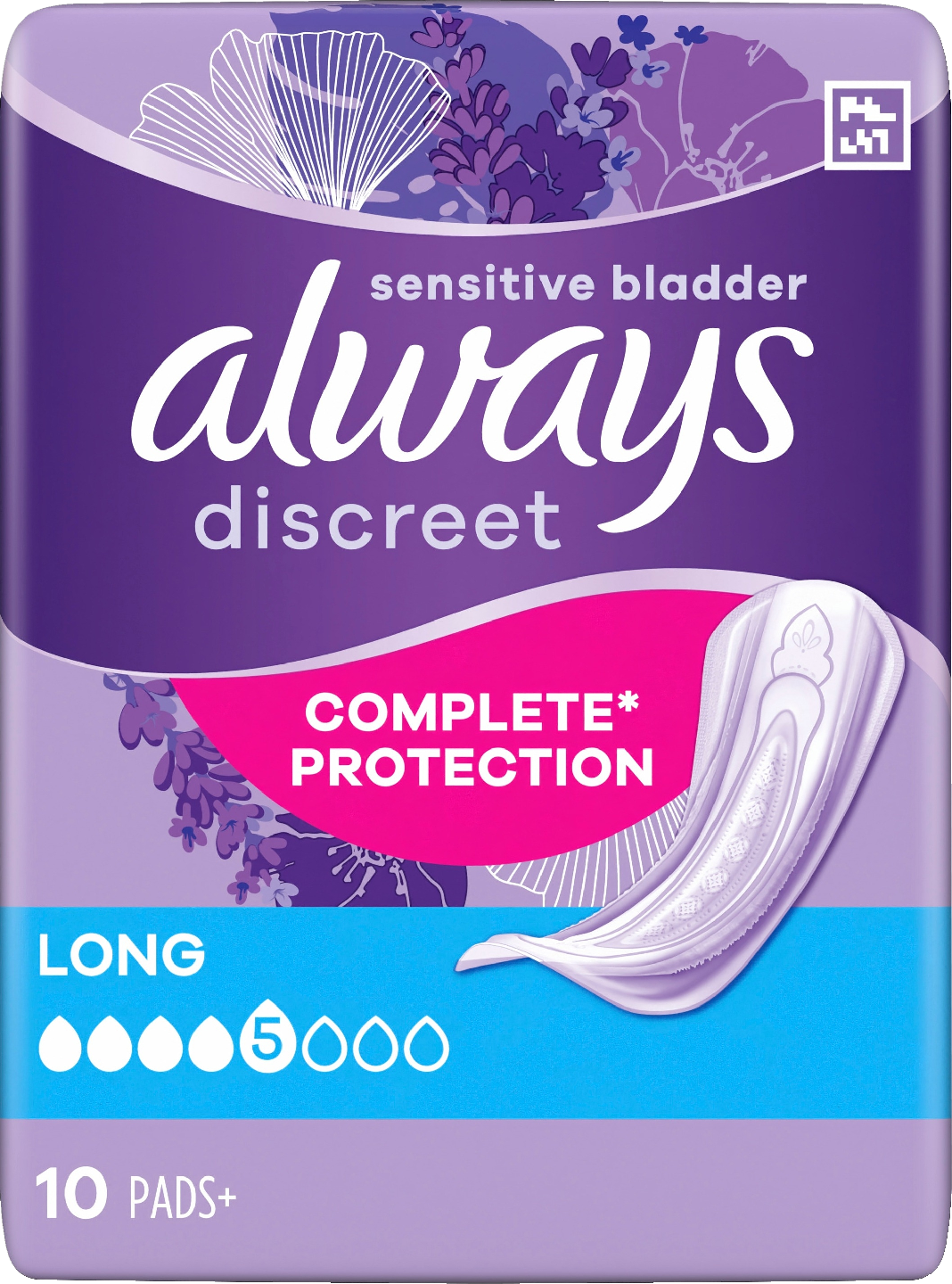 Always Discreet Long -inkontinenssisuojat tarjoavat täyden suojaavuuden ja huomaamattoman istuvuuden. Side on suunniteltu suojaamaan luotettavasti ohivuodoilta, hallitsemaan hajuja, tuntumaan kuivalta, pehmeältä ja hellävaraiselta ihoa vasten sekä istumaan huomaamattomasti. Jos aivastaminen tai nauraminen aiheuttavat virtsankarkailua, Always Discreet Long -siteet suojaavat tehokkaasti ja huomaamattomasti, jotta voit tuntea olosi varmaksi.