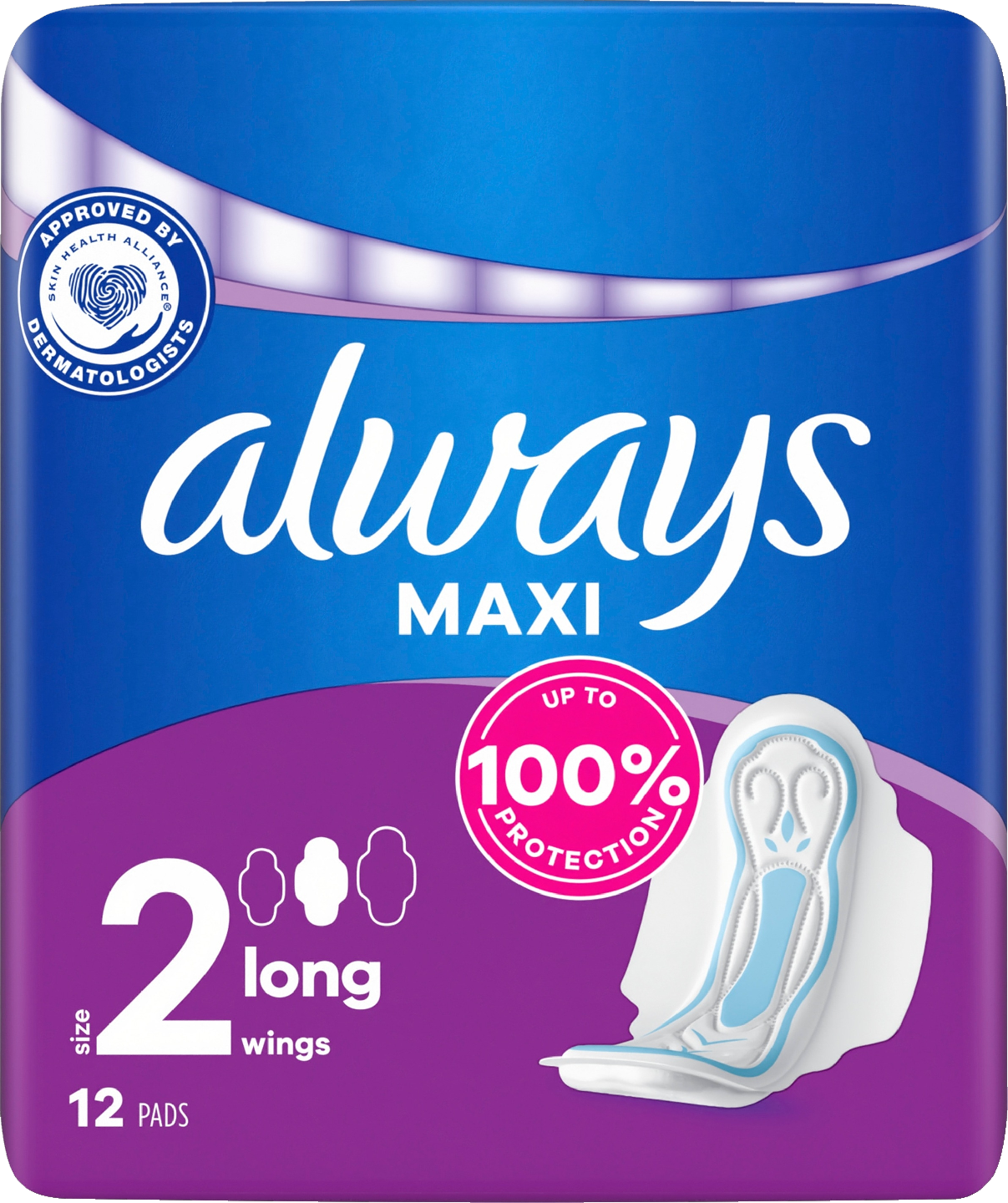 Pysy luottavaisesti suojattuna Always Maxi Long -siteiden (koko 2) siivekkeillä. Erityisesti runsaaseen vuotoon suunnitellut pehmeät siteet tarjoavat jopa 100 % suojan edistyneiden ohivuotosuojien ja erittäin imukykyisen ytimen avulla. Pehmeä pintakerros lisää mukavuutta, kun taas paksumpi rakenne varmistaa, että voit tuntea olosi turvalliseksi ja suojatuksi koko päivän ajan. Lisäsuojaa yöllä saat kokeilemalla Always Maxi kokoa 4.