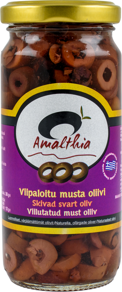 Amalthian valmiiksi viipaloidut tummat oliivit ovat maukkaita kreikkalaisia luonnostaan tummia oliiveja. Nauti salaateissa, pizzan päällä tai sellaisenaan.