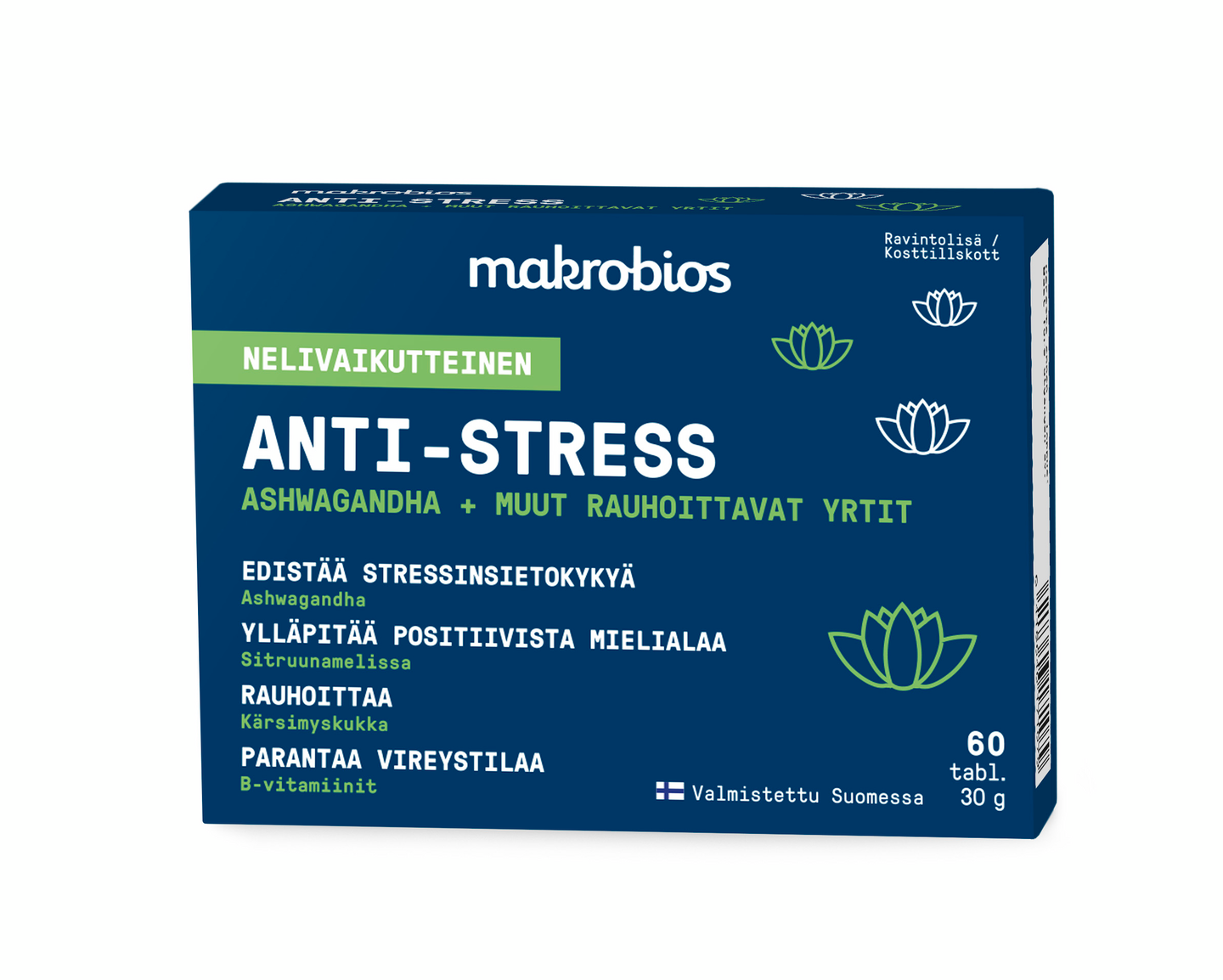 VegaaninenAshwaganda edistää stressinsietokykyä. Kärsimyskukka rentouttaa ja rauhoittaa mielialaa. Sitruunamelissa ylläpitää positiivista mielialaa. B1- ja B5 vitamiini edistävät normaalia energia-aineenvaihduntaa.