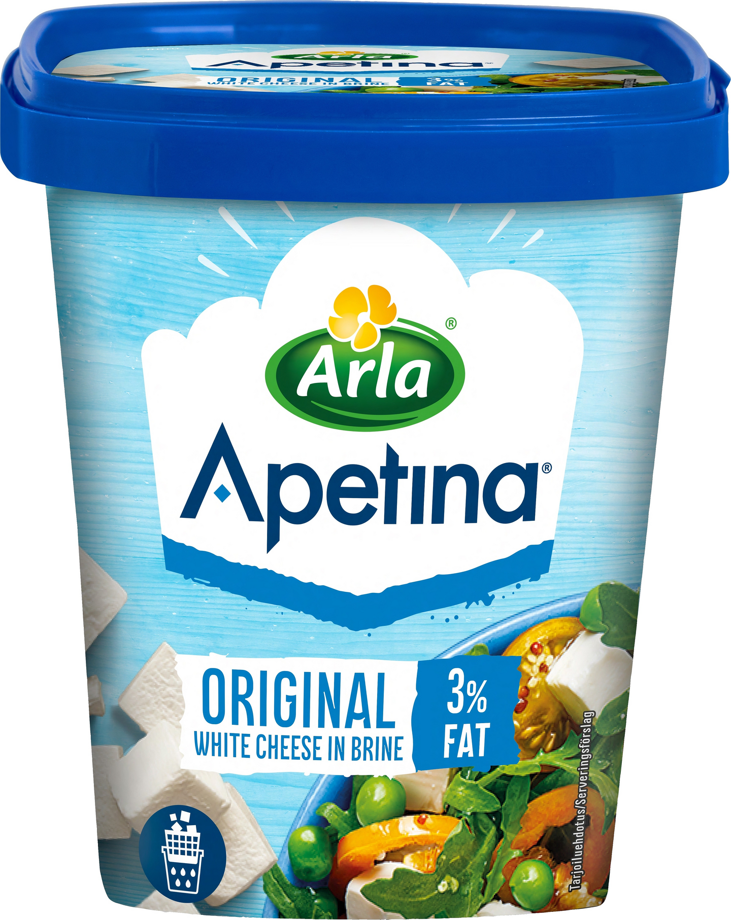 Kevyt salaattijuusto kuutioina suolaliemessä. Vähälaktoosinen.