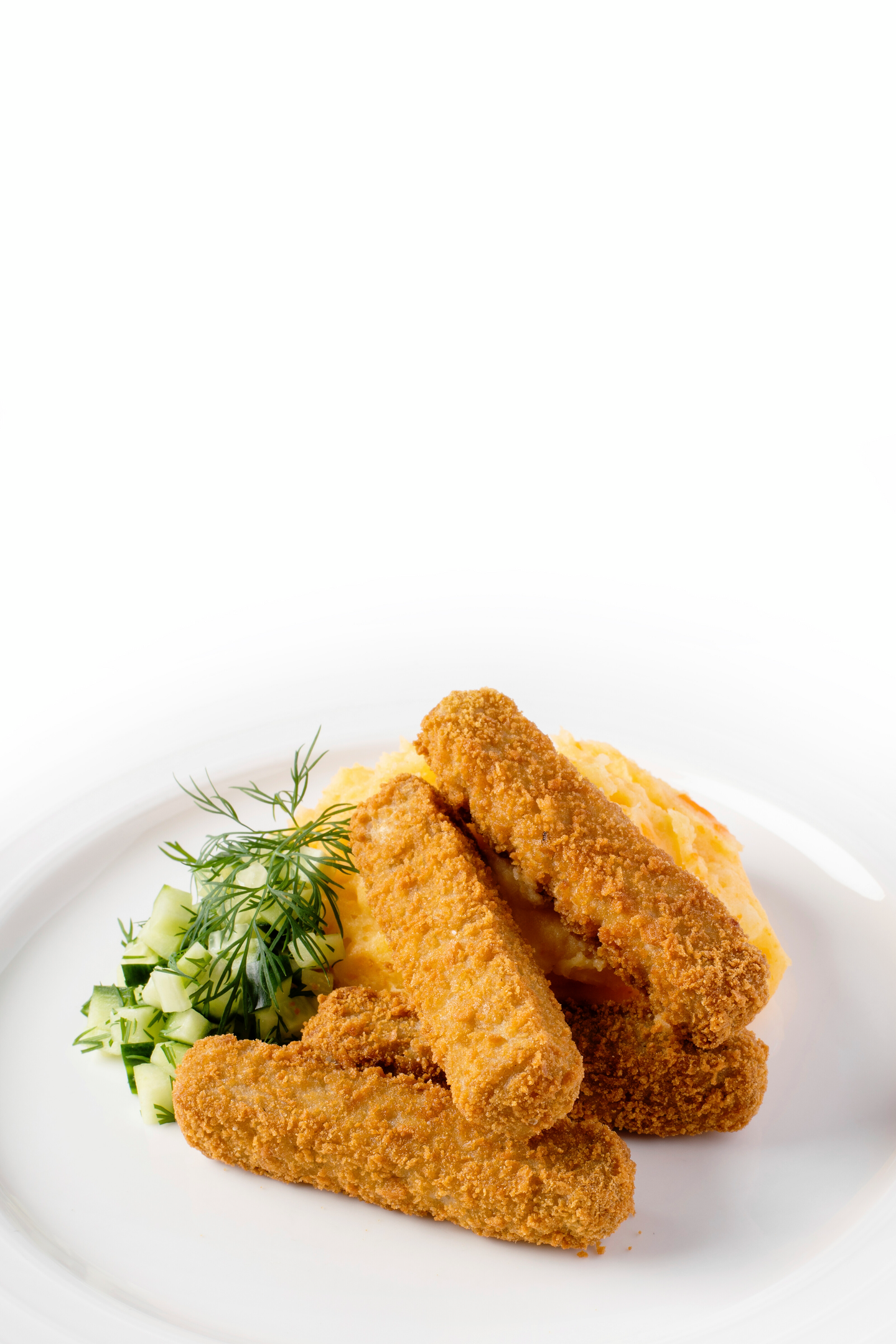 Suomen järvistä ja merialueelta pyydetty SÄRKIKALA (Rutilus rutilus) vaihtelevina osuuksina 55 %, gluteeniton paneeraus (riisijauho, kikhernejauho, maissitärkkelys, suola, dekstroosi), rapsiöljy, suomalainen peruna, suomalainen laktoositon kuohuKERMA, suomalainen emmentalJUUSTO, suomalainen perunahiutale, MUNANVALKUAISjauhe, hernekuitu, muunnettu maissitärkkelys, jodioitu suola, sitruunamehutiiviste, mustapippuri.