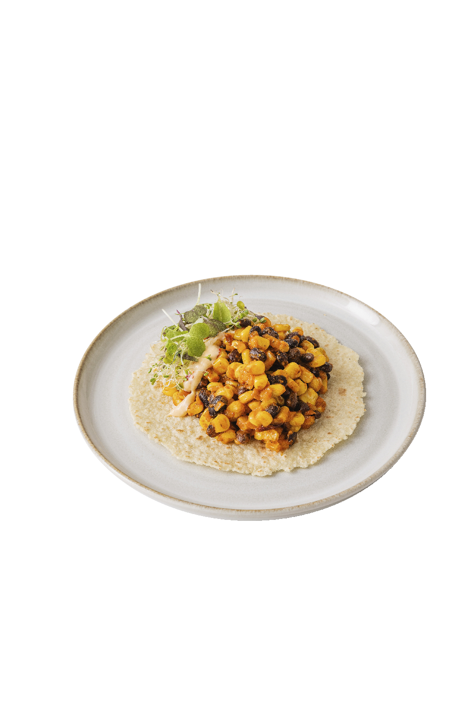 Maissi, vesi, mustapapu, kidneypapu, sipuli, tomaattisose, rapsiöljy, mausteet (mm. paprika, savupaprika, chili, juustokumina, korianteri, mustapippuri, oregano, laakerinlehti), fariinisokeri, muunnettu tärkkelys, jodioitu suola, limemehujauhe, aromit.