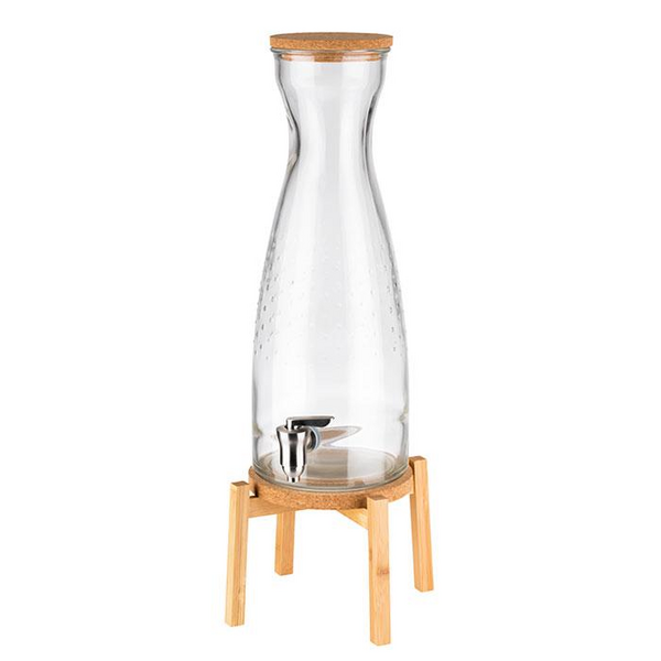 Juoma-annostelijasetti buffet- ju muuhun ammattitarjoiluun. APS Fresh Wood juoma-annostelijassa on lasinen 4,5 l säiliö korkkikannella ja ruostumaton teräs hanalla sekä puinen jalusta, jolla korkkialusta säiliölle. Kapea muotoilu säästää tilaa ja tekee kokonaisuudesta näyttävän ratkaisun juomatarjoiluun ammattikeittiöissä.