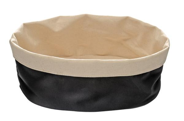 APS canvaspuuvillainen leipäpussi on rento ja tyylikäs vaihtoehto perinteiselle korille. Pussi on pellavanvärinen sisäpuoleta ja musta ulkopuolelta, pussin tilavuutta / korkeutta voi säätää reunaa kääntämällä. Pussi on konepesunkestävä max 30 °C.