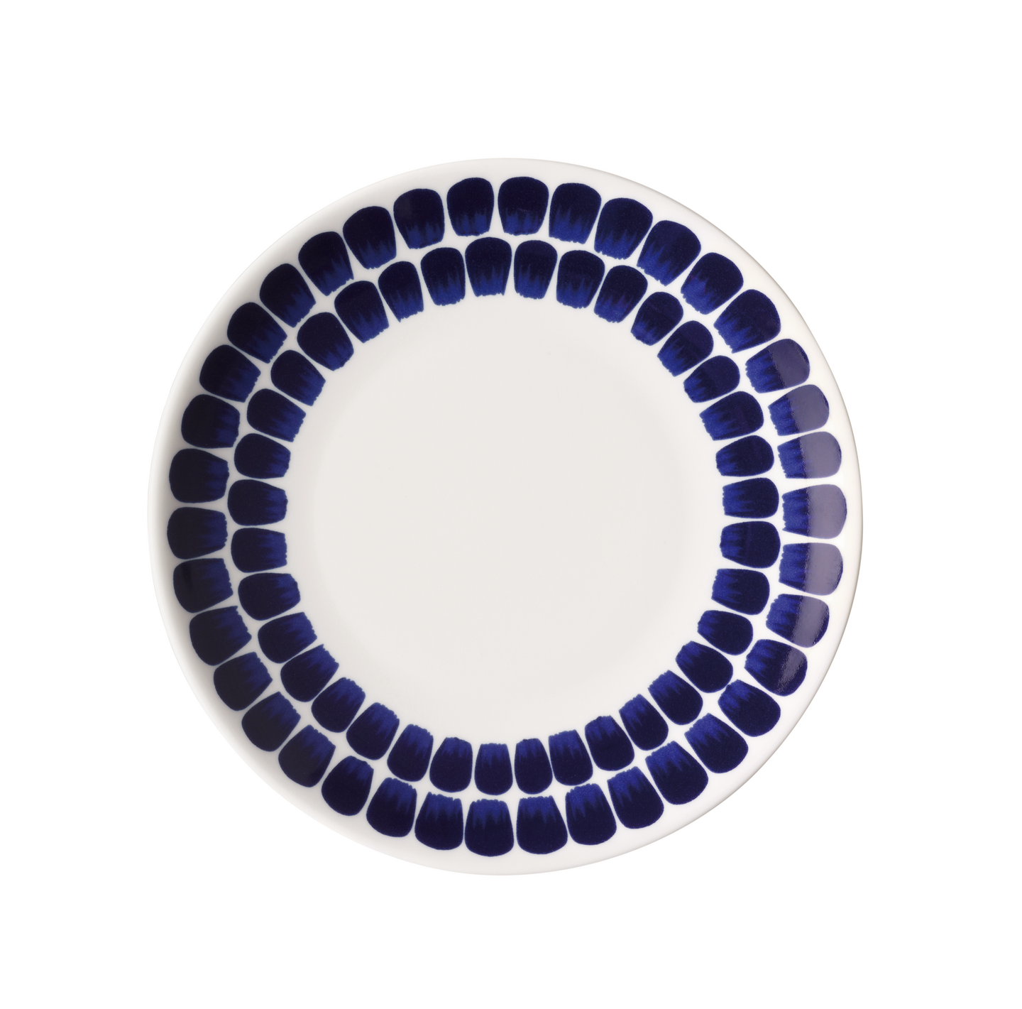 Arabia 24h Tuokio lautanen 20 cm ruokailuun, on raikkaan sinivalkoinen. Heikki Orvolan 24h-sarja on saanut uuden ilmeen muotoilutoimisto Helorinne ja Kallion suunnitteleman Tuokio-kuvion myötä. Astioiden käsinmaalattu vaikutelma yhdistettynä moderniin kuvioon sopii nykypäivän monimuotoisiin kattauksiin.