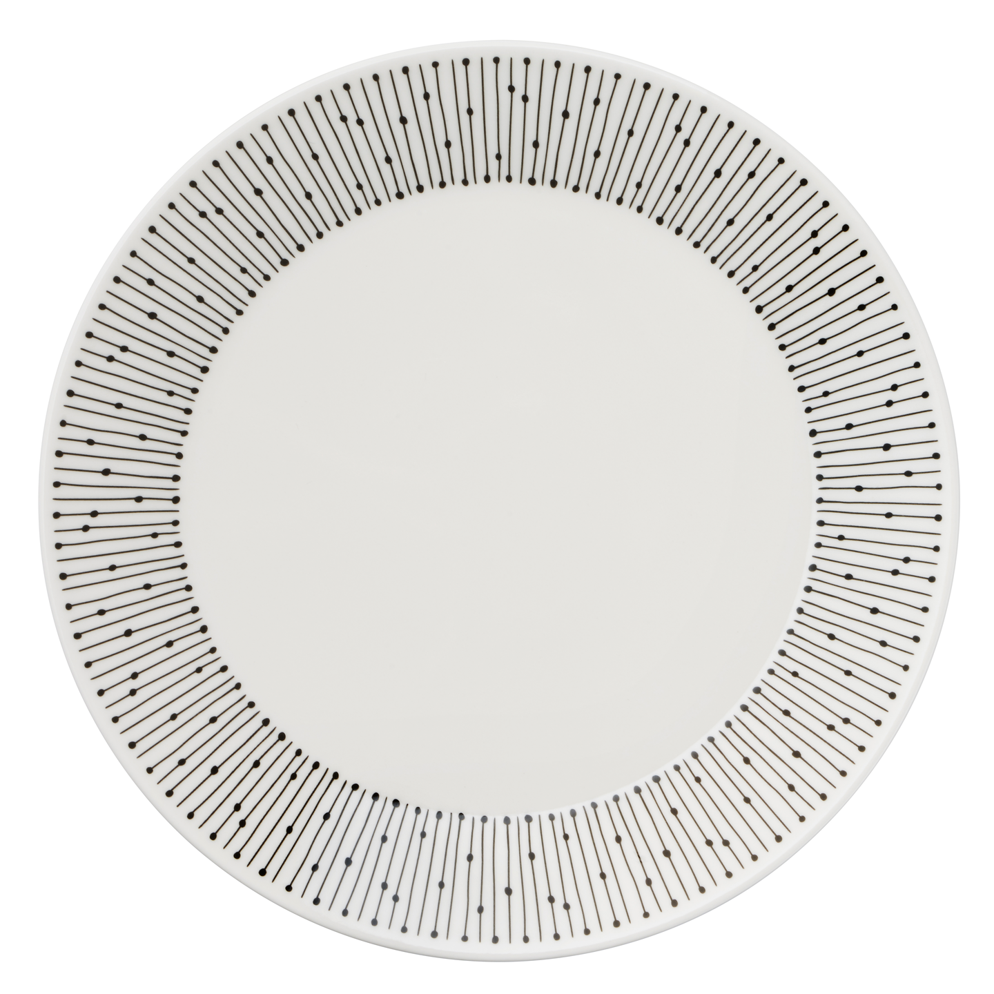 19 cm lautasta koristaa graafinen mustavalkoinen kuvio. Mainio Sarastus on uusi monikäyttöinen astiasarja, joka sopii pieneenkin kotiin.