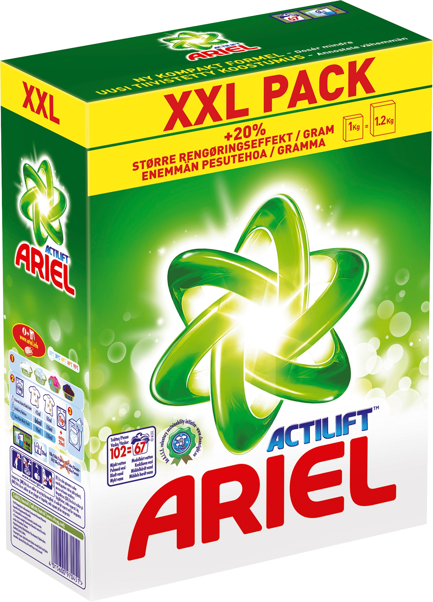 15- 30% Happea sisältävä valkaisuaine 5-15% Anioniaktiivisia tensidejä <5% Ionittomia tensidejä, Polykarboksylaateja, Fosfonaatteja, Zeoliitiä Entsyymejä, Optisia kirkasteita, Hajustetta. Hexyl Cinnamal, Linalool, Butylphenyl Methylpropional.
