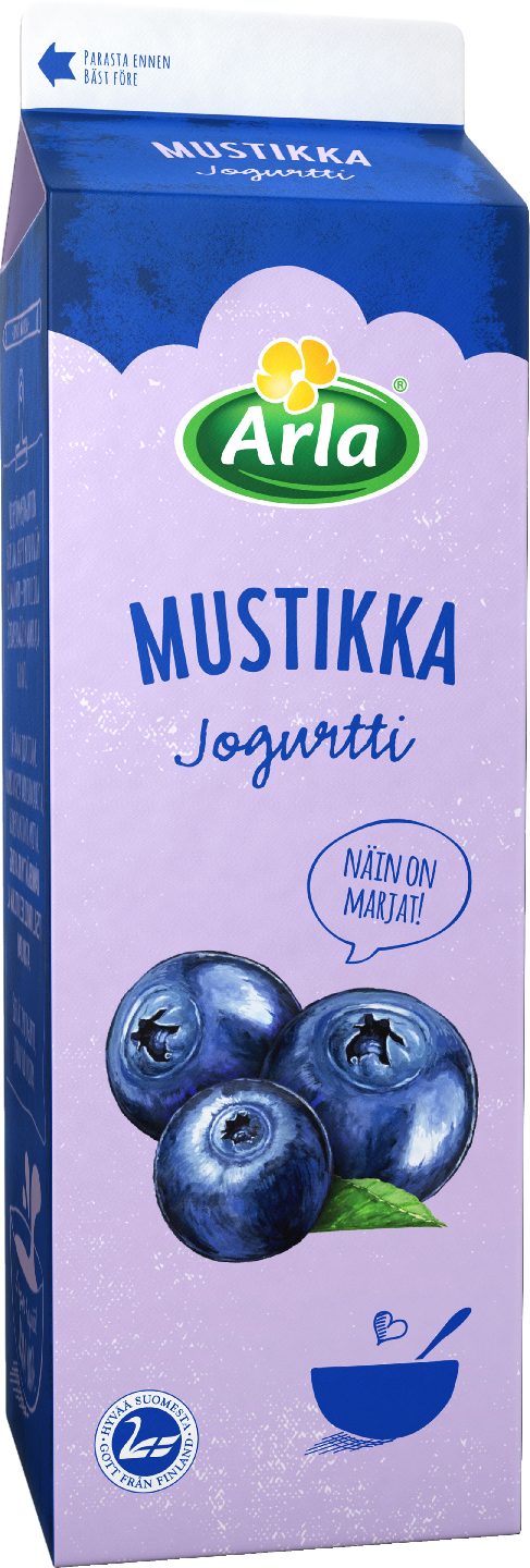 Maista kesäiset mustikat Arla Mustikkajogurtin muodossa! Marjainen ja lempeän makuinen mustikkajogurtti saa suut muikeaksi heti aamusta!