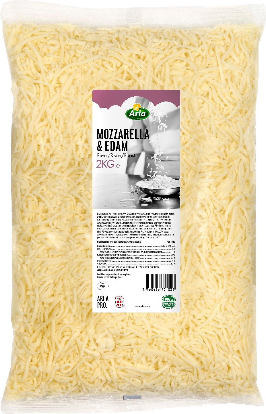 Arla Pro Mozzarella-Edam juustoraaste 2kg 23% vähälaktoosinen