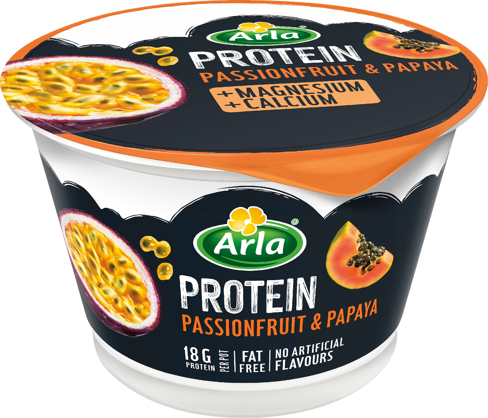 LaktoositonPehmeä ja eksoottisen maukas Passion & Papaija proteiinirahka. Sisältää 18g proteiinia ja kalsiumia, lisänä myös magnesiumia. Proteiini edistää lihasmassan kasvua ja magnesium edistää lihasten normaalia toimintaa. Rasvaton ja laktoositon. Välipalaksi ja aktiiviseen elämään!