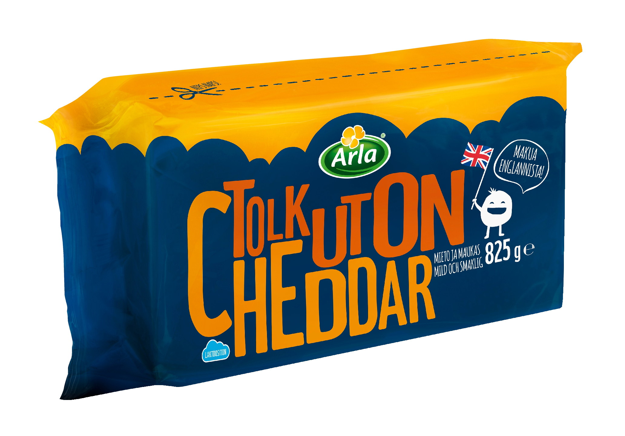 LaktoositonArlan Tolkuton Cheddar maistuu miedon ja maukkaan makunsa takia koko perheelle. Juusto sopii erinomaisesti leivän päälle.