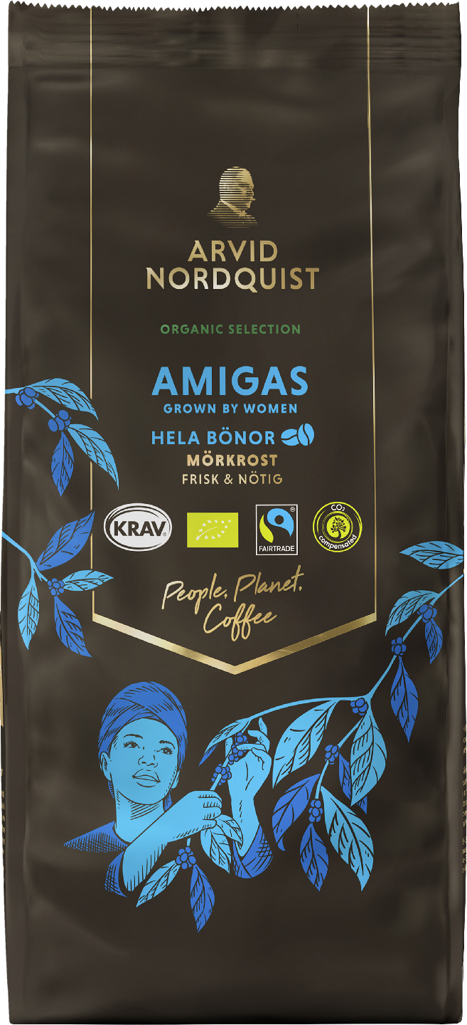 Amigas on erittäin tummaksi paahdettu kahvi, jossa on tasapainoinen täyteläisyys sekä sitruksen ja suklaan sävyjä. 100% luomua parhaimmista Arabica-pavuista. Reilun kaupan sertifiointi, 100% ilmastokompensointi sekä fossiiliton paahtimo.