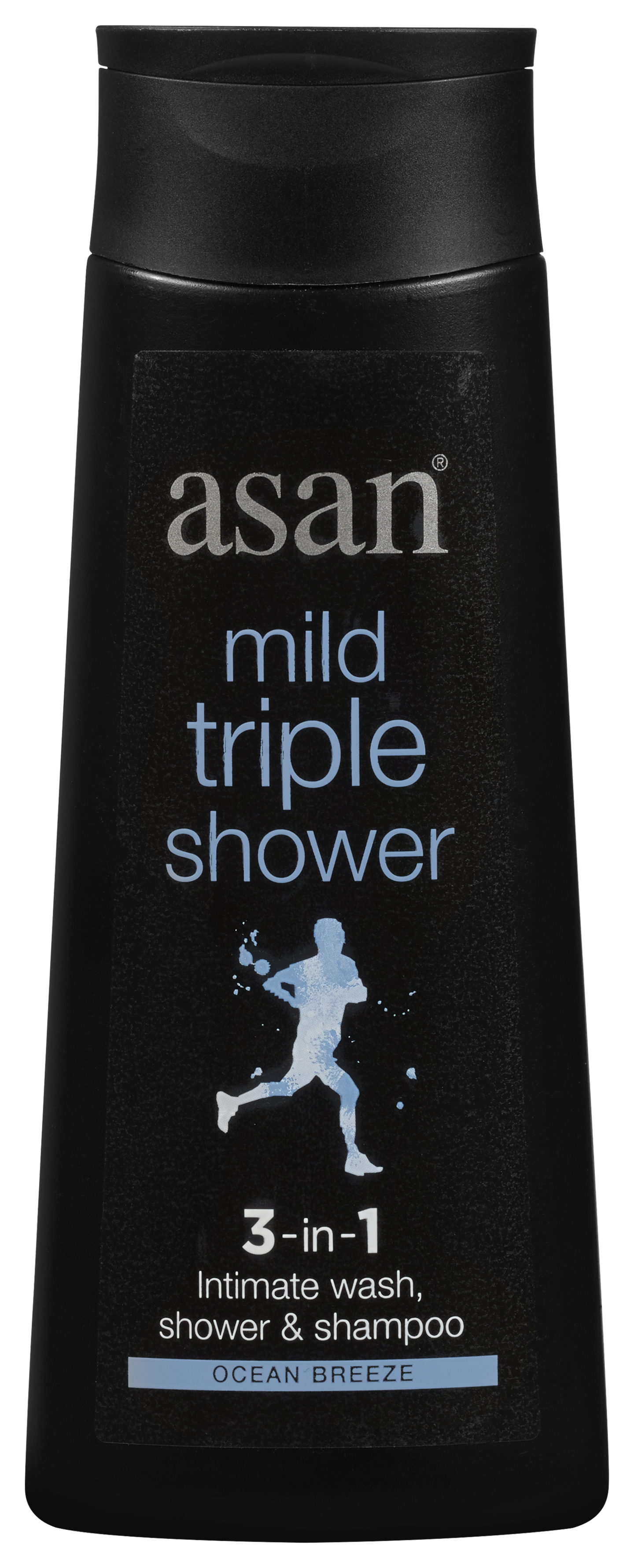 Asan Tripla mieto suihkusaippua on hellävarainen ja sopii niin intiimialueelle, vartalolle kuin hiuksillekin. Asan on käytännöllinen usein toistuvaan pesuun, sillä se on erityisen mieto ja hellävarainen. Ei sisällä parabeeneja ja pH on intiimialueelle sopiva. Kevy esti vaahtoava ja miedosti miehekkään tuoksuinen. Asan Tripla mieto suihkusaippua – miehekäs ja itsevarma joka päivä.