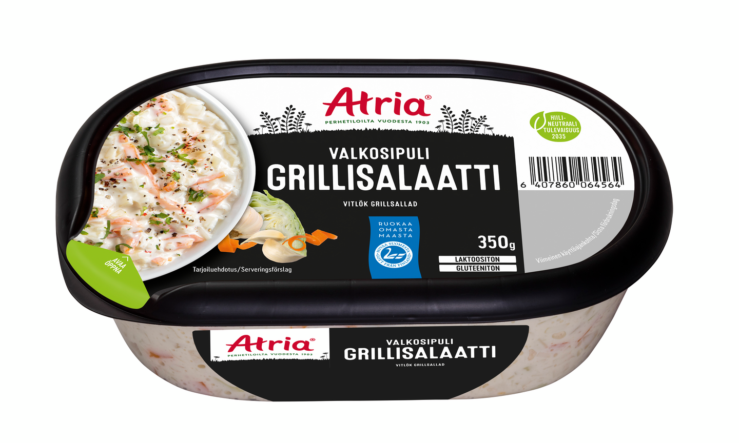 kaali (Suomi), valkosipulimajoneesi (rypsiöljy, vesi, sokeri, etikka, KANANMUNANKELTUAINEN, sinappi (vesi, sokeri, SINAPINSIEMEN, etikka, jodioitu suola, rypsiöljy, väri sokerikulööri, säilöntäaine natriumbentsoaatti, valkopippuri), mausteet (mm. valkosipuli), muunnettu perunatärkkelys, jodioitu suola, sakeuttamisaine ksantaanikumi, säilöntäaineet (kaliumsorbaatti, natriumbentsoaatti), aromit), porkkana, sipuli