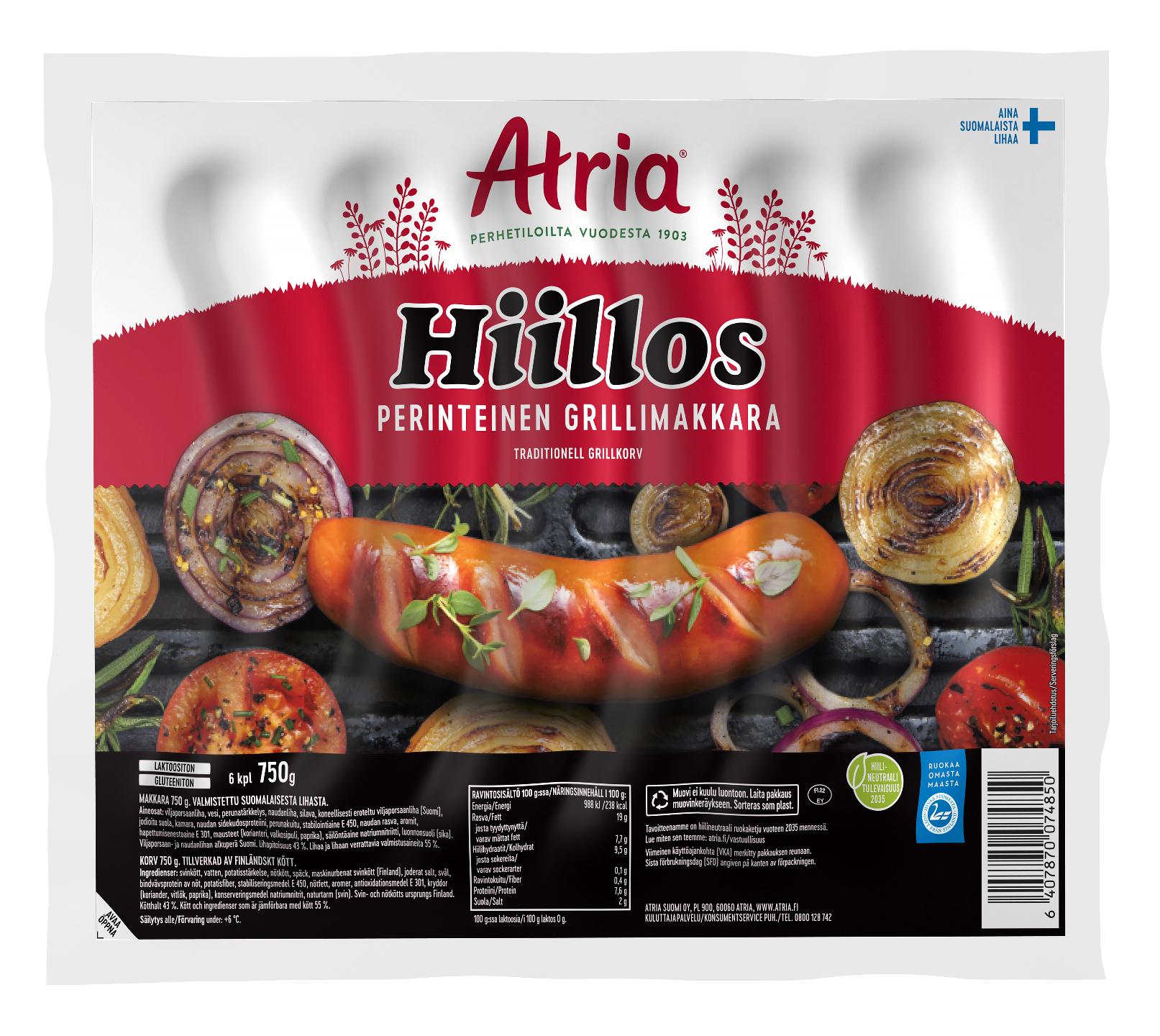 Atria Hiillos Grillimakkaran mausta kertoo, että se on säilynyt suomalaisten suursuosikkina jo yli 40 vuotta. Isommasta pakkauksesta riittää grillattavaa isommallekin porukalle eli pakkaus on omiaan vaikka saunailtaan tai talkoisiin.