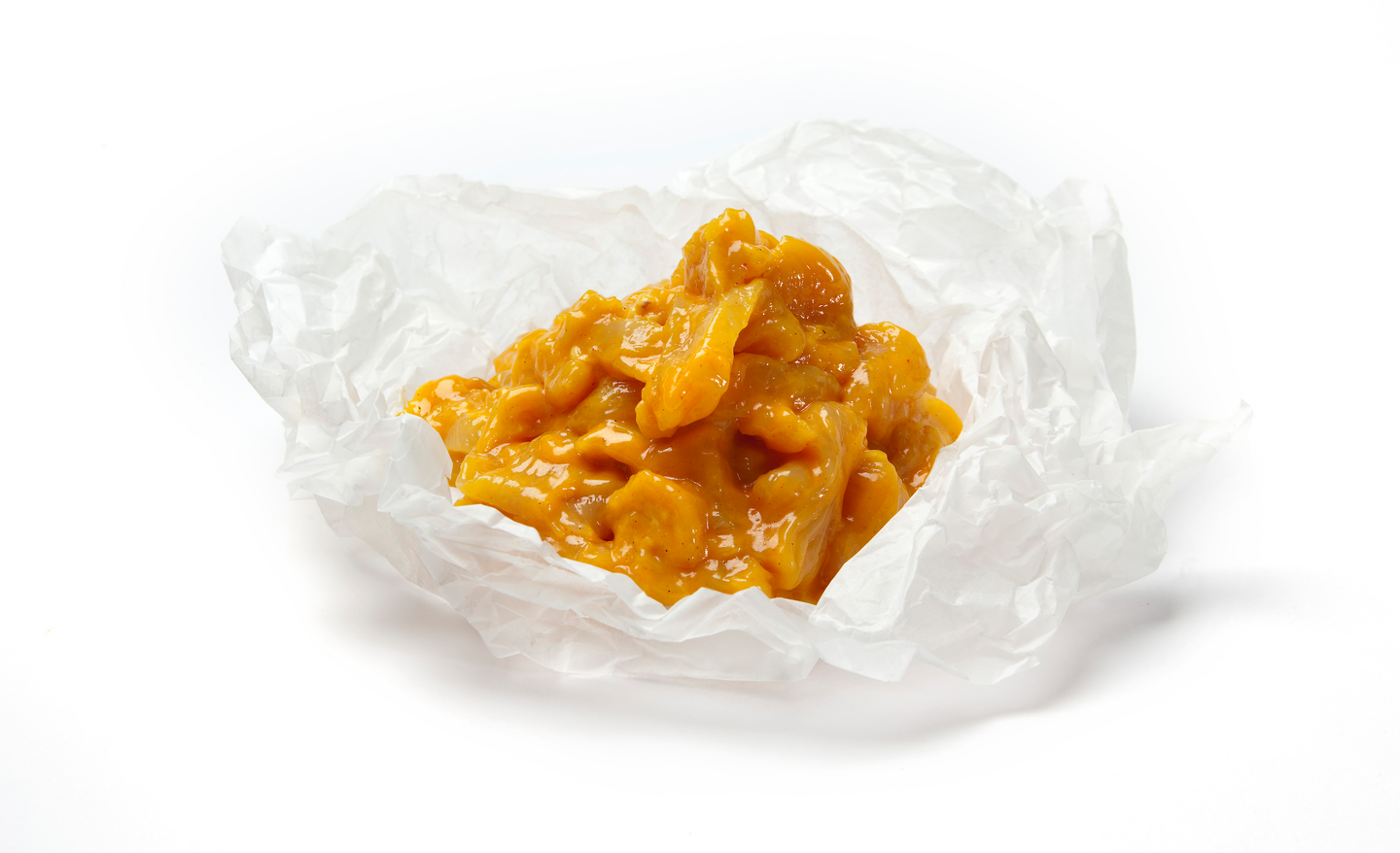 broilerin fileesuikale (70 %), vesi, rypsiöljy, hunaja, sokeri, jodioitu suola, etikka, mausteet (sipuli, paprika, mustapippuri, kurkuma, valkopippuri, korianteri, juustokumina, cayenne, inkivääri), maltodekstriini, sakeuttamisaineet (guarkumi, ksantaanikumi), hapettumisenestoaine E 331, maissitärkkelys, säilöntäaineet (natriumbentsoaatti, kaliumsorbaatti), aromit. Broilerinlihan alkuperä Suomi
