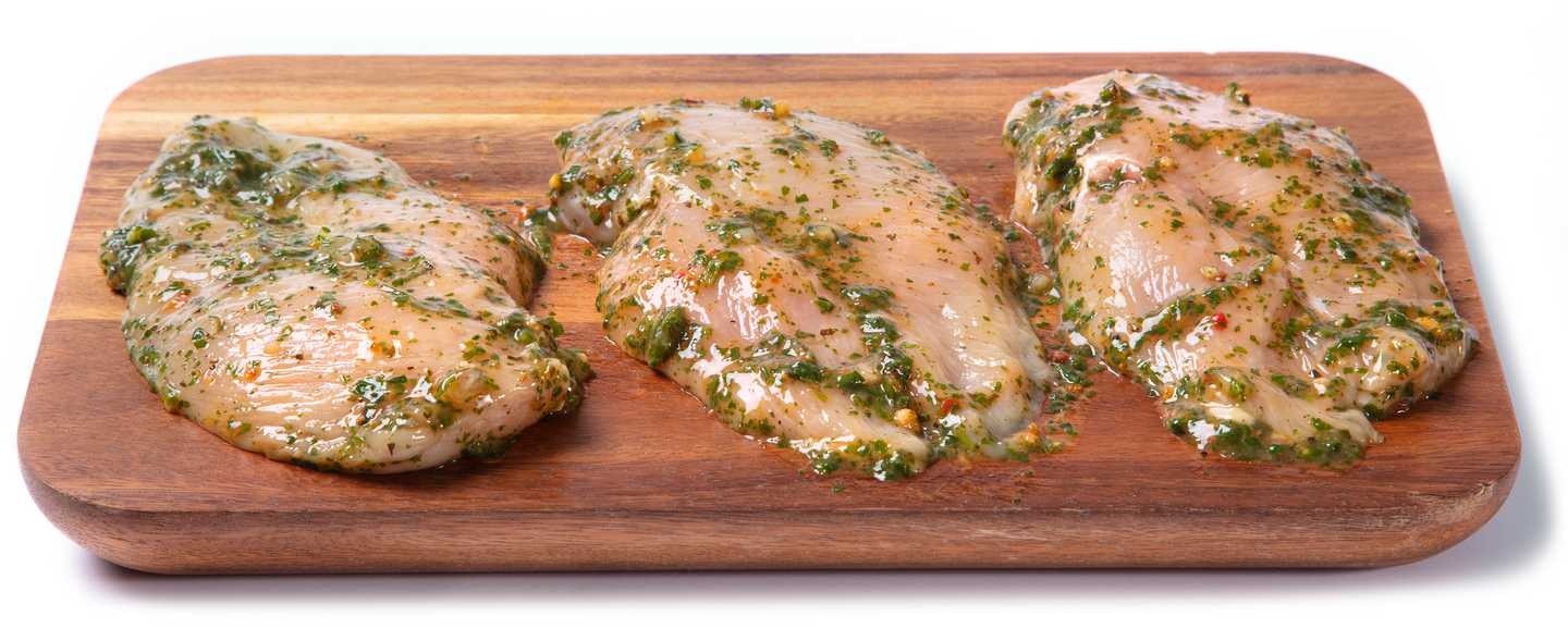 broilerinfilee (80 %), vesi, mausteet (persilja, valkosipuli, aurinkokuivattu tomaatti, sitruuna, mustapippuri, oregano, chili, basilika), maltodekstriini, jodioitu suola, omenaviinietikka, sokeri, sakeuttamisaineet (ksantaanikumi, E 407), aromit, säilöntäaineet (kaliumsorbaatti, natriumbentsoaatti). Broilerinlihan alkuperä Suomi