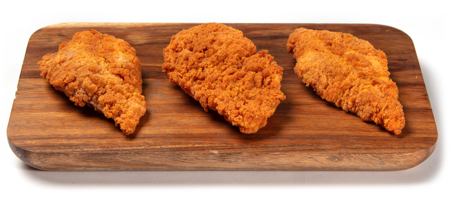 broilerin filee (73 %), vesi, VEHNÄJAUHO, rypsiöljy, jodioitu suola, mausteet (paprika, valkopippuri, kurkuma), nostatusaineet E 500, stabilointiaineet (E 451, E 450), sakeuttamisaineet (guarkumi, ksantaanikumi), dekstroosi. Broilerinlihan alkuperä Suomi