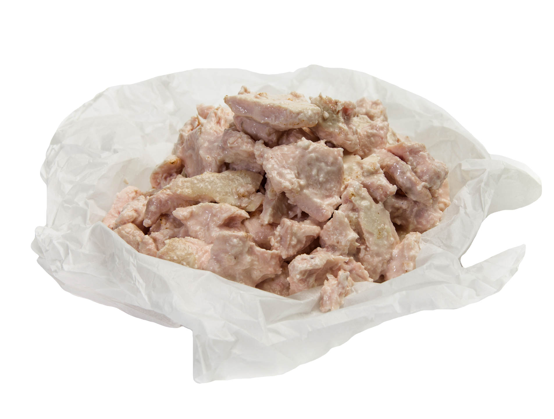 broilerin filee, rypsiöljy, jodioitu suola, maltodekstriini, dekstroosi, sakeuttamisaine guarkumi, stabilointiaine ksantaanikumi, säilöntäaineet (natriumbentsoaatti, kaliumsorbaatti), happamuudensäätöaine sitruunahappo. Broilerinlihan alkuperä Suomi. 100 g tuotetta on käytetty 108 g lihaa