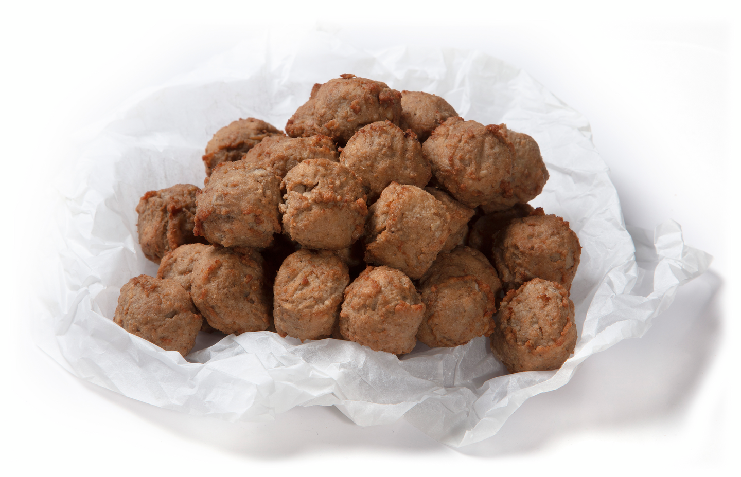 vesi, koneellisesti eroteltu siipikarjanliha (Suomi), siipikarjanrasva, liha 17 % (broileri ja viljaporsas), SOIJAPROTEIINIVALMISTE, korppujauho (VEHNÄJAUHO), perunajauho, mausteet (mustapippuri, paprika, korianteri, maustepippuri, sipuli, lipstikka), jodioitu suola, peruna- ja hernekuitu, dekstroosi, emulgointiaine auringonkukkalesitiini, aromit, herneproteiini. Voimakassuolainen. Viljaporsaan- ja broilerinlihan alkuperä Suomi