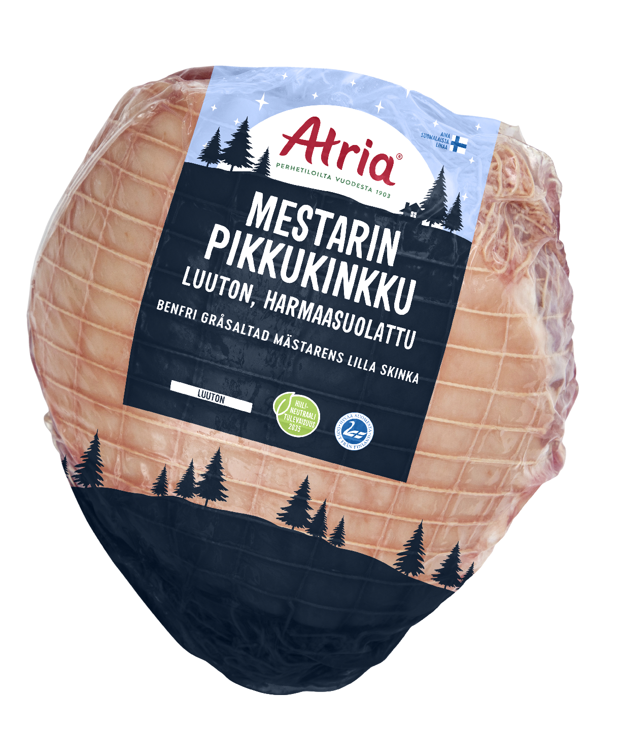 LaktoositonAtrian Mestarin Pikkukinkku on luuton pieni joulukinkku. Mestarin pikkukinkku koostuu kokonaisesta possun kulmapaistista. Kinkun päälle on jätetty lihaan makua paiston aikana tuova rasvakerros ja kamara jotka yhdessä varmistavat mehukkaan lopputuloksen. Valmiiksi suolattuna tämä kinkku on helppo valmistaa ja on varmasti mehukas ja maukas.