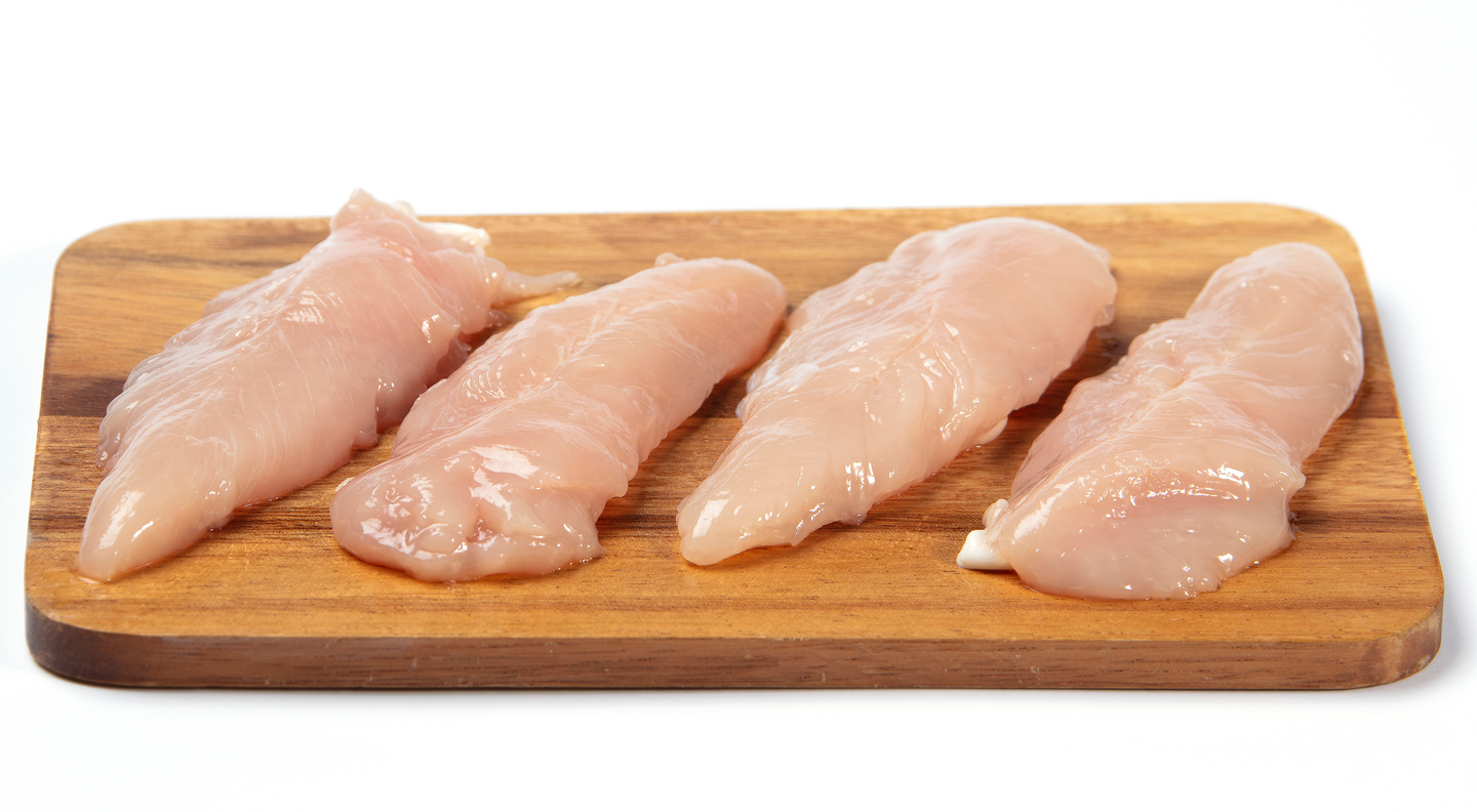 broilerin sisäfilee (91 %), vesi, jodioitu merisuola. Broilerinlihan alkuperä Suomi