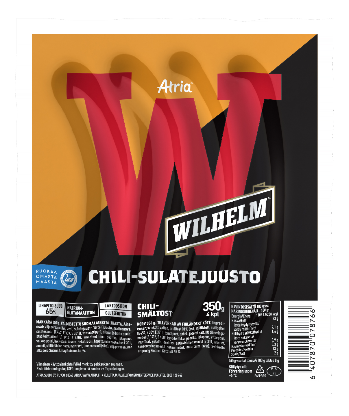 Atria Wilhelm chili-sulatejuusto grillimakkara 350g