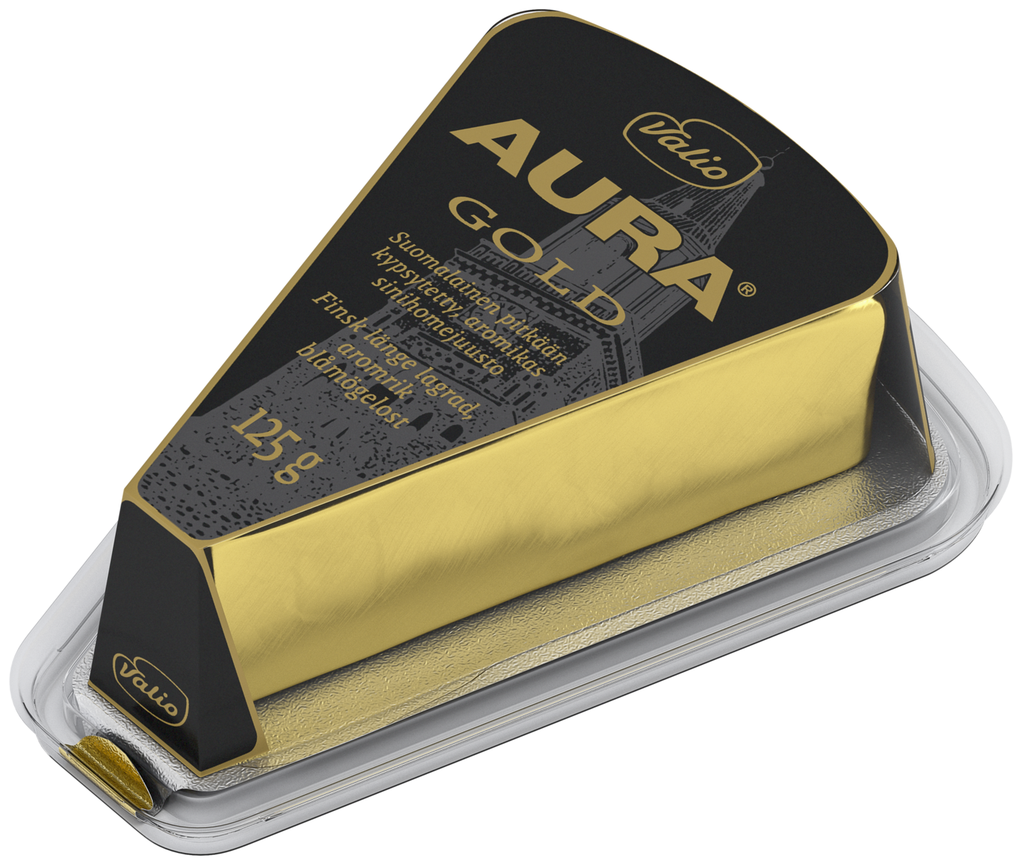 LaktoositonValio AURA® Gold on ainutlaatuinen, suomalainen, pitkään kypsytetty ja aromikas sinihomejuusto viilenevien iltojen herkutteluhetkiin. Pidempään kypsytetty Valio AURA® Gold on kausituote ja saatavilla vain rajoitetun ajan syyskuusta tammikuuhun. Uniikki ja omaleimainen juusto!